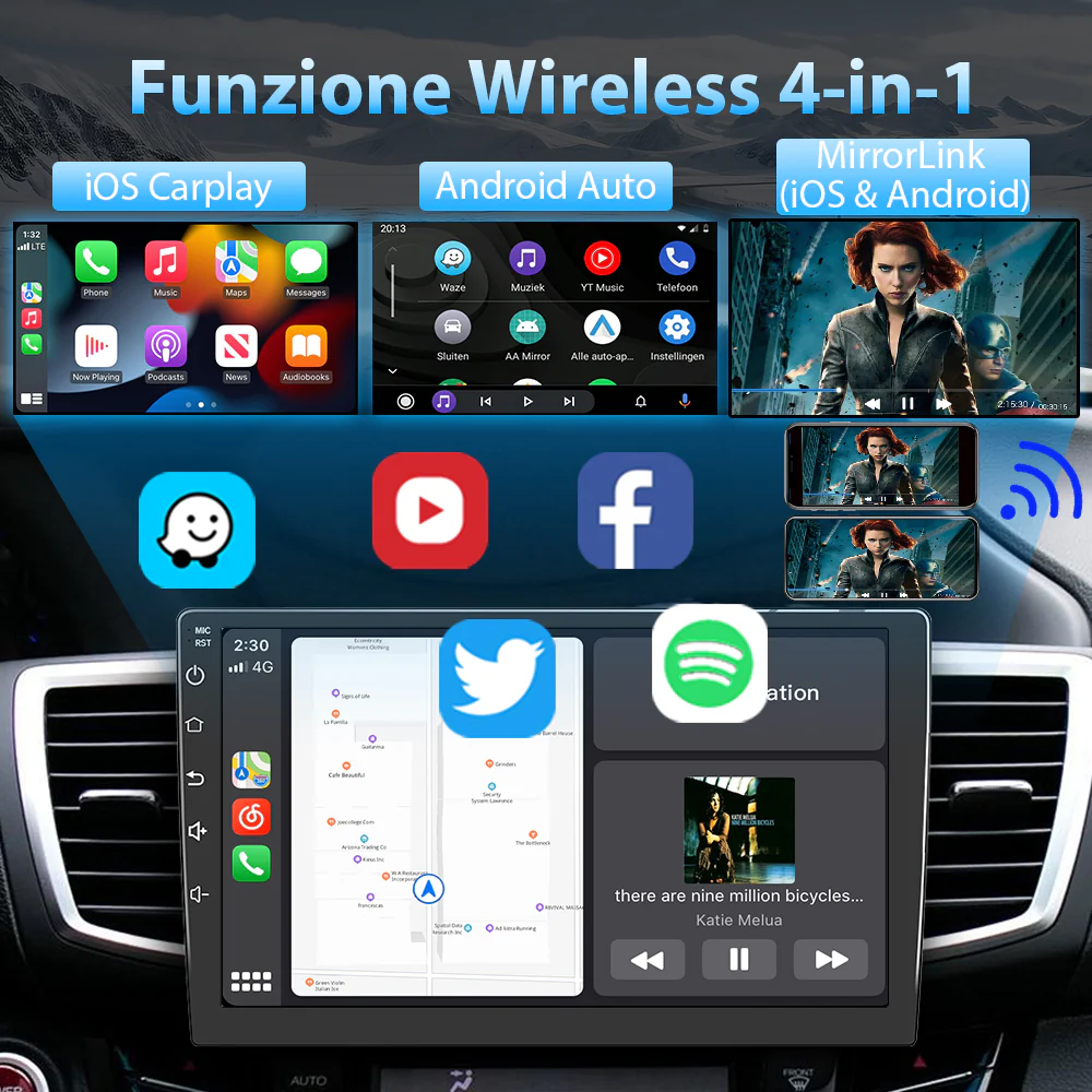 AWESAFE 1DIN Estéreo para coche con Inalambrico Carplay & Android Auto ,6.36 pulgadas mit Mirror Link Bluetooth Transmisor FM+Cámara Trasera+micrófono