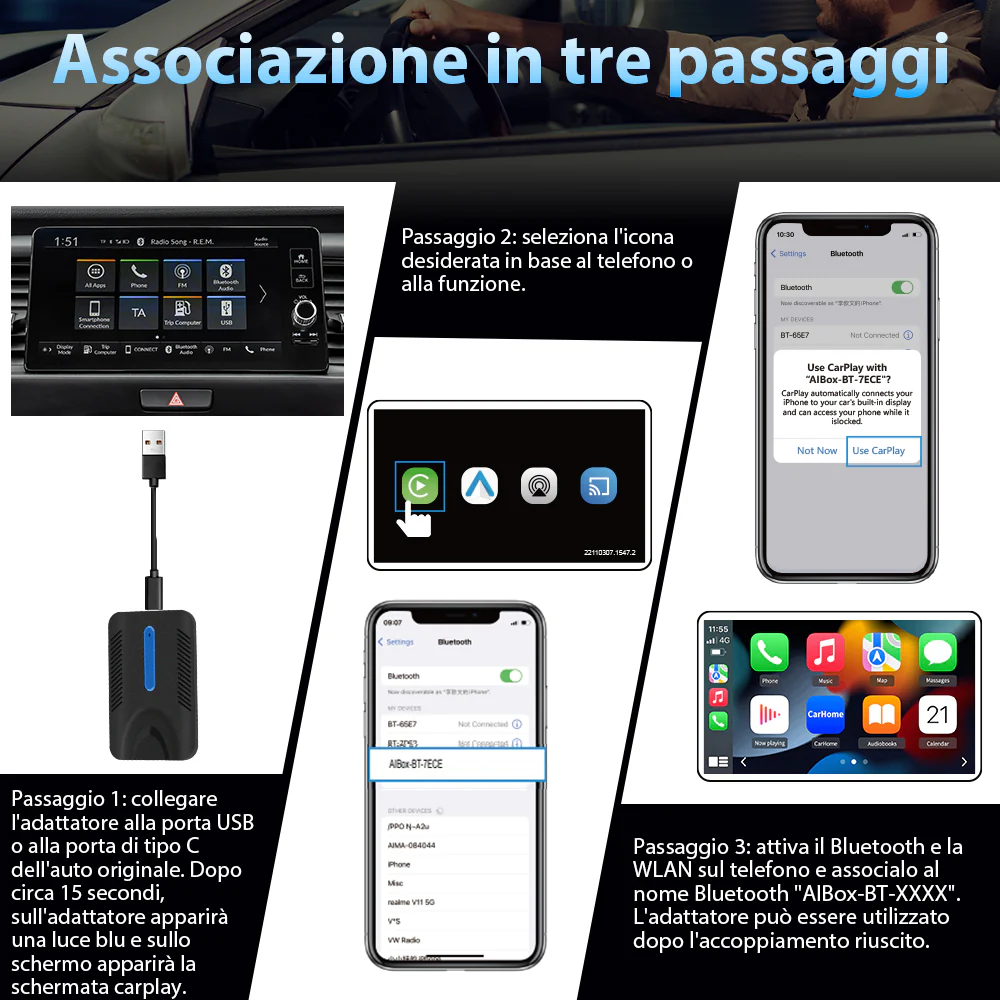 Adattatore wireless CarPlay AWESAFE Dongle Apple CarPlay per auto Apple CarPlay cablate in fabbrica Plug & Play