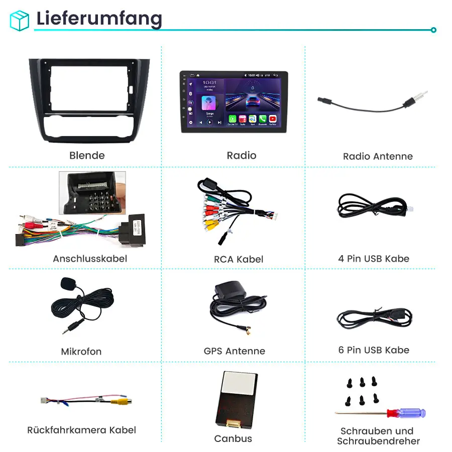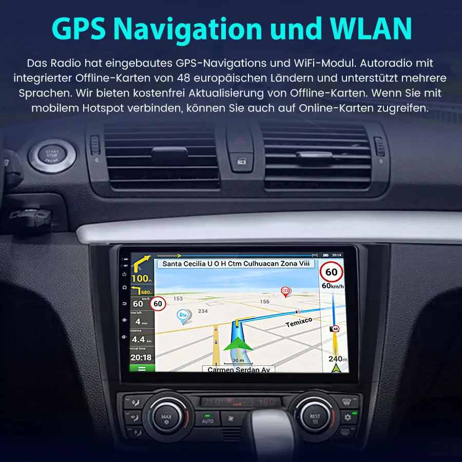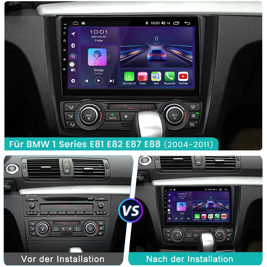 Android-Radio für BMW 1er E81 E82 E87 E88 (2004–2011), integriertes Carplay/Android Auto SWC BT AM/FM GPS-Navigation und WLAN