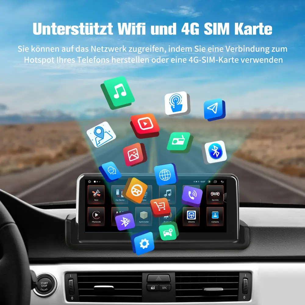 Android 8.8 Zoll AutoRadio 4G+64G für BMW 1 Serie E81 E82 E87 E88 2005-2012 mit ClC system Built in Carplay/Android Auto SWC BT AM/FM