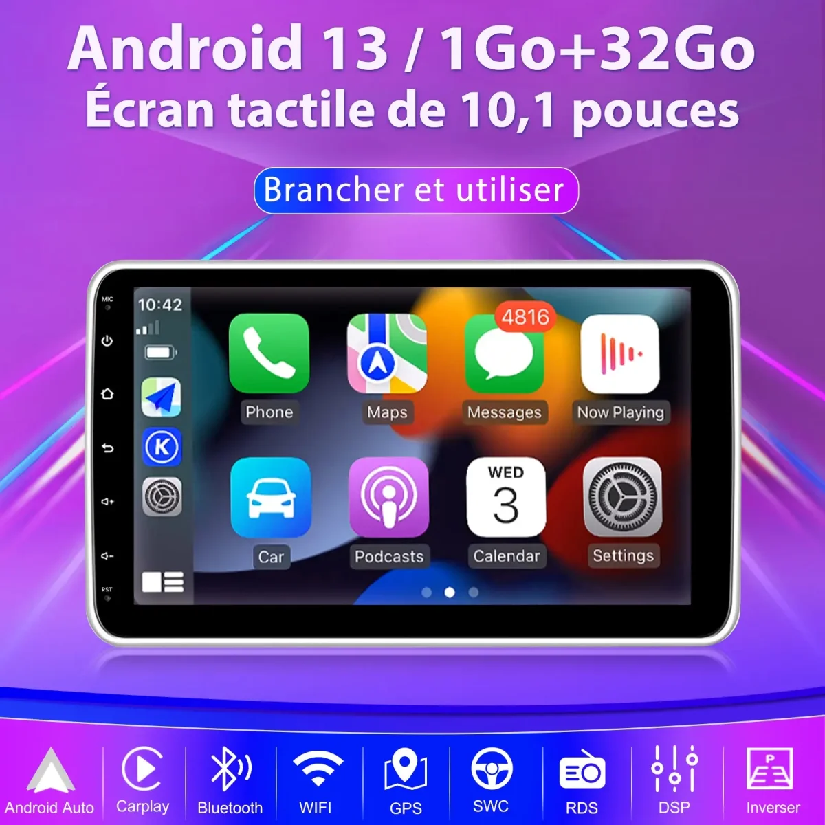 AWESAFE 1 DIN Autoradio Android 13 – Écran Tactile 10,1 Pouces (1 Go+32 Go / 2 Go+64 Go) avec Caméra Recul, Bluetooth, GPS, Android Auto et Carplay sans fil