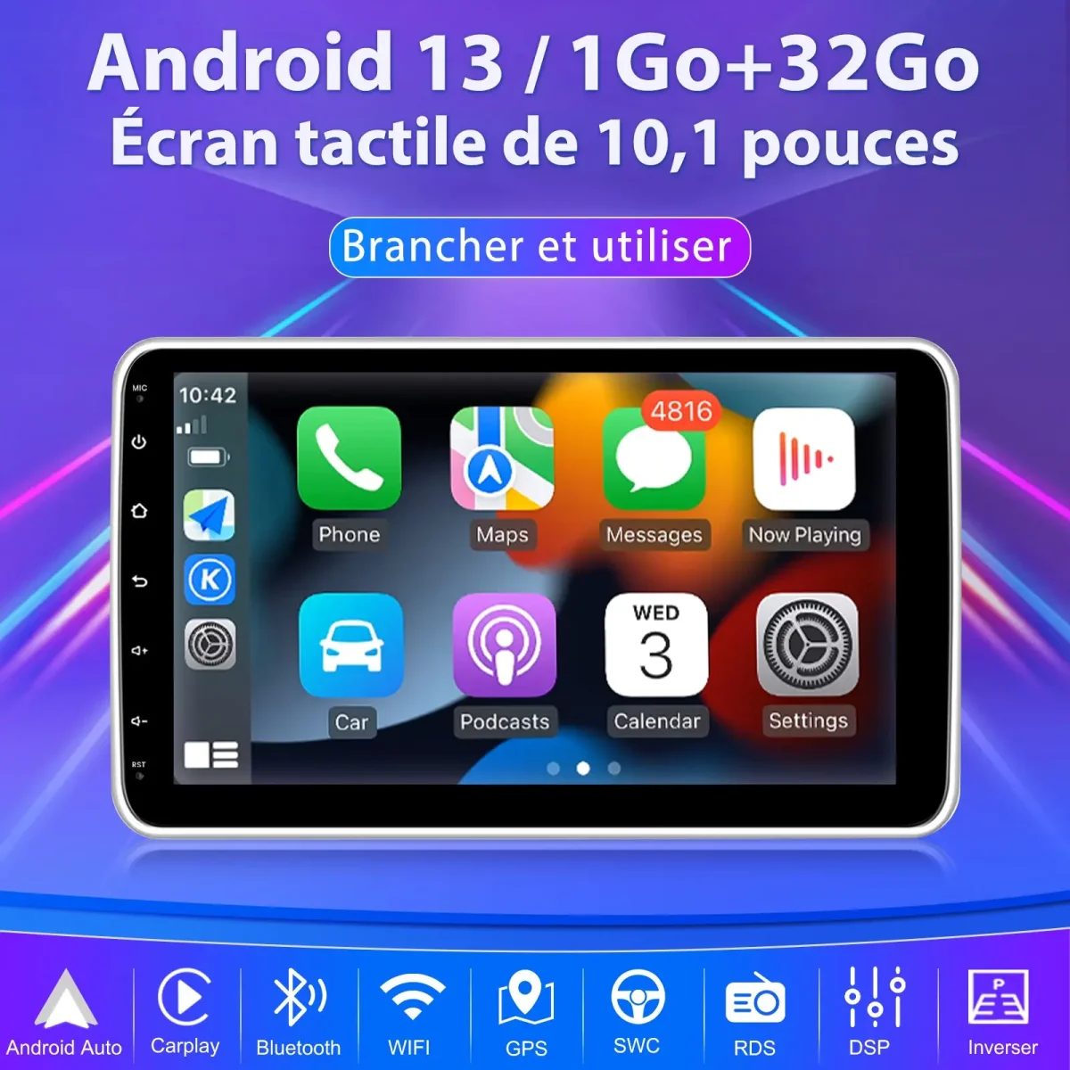 AWESAFE 1 DIN Autoradio Android 13 – Écran Tactile 10,1 Pouces (1 Go+32 Go) avec Bluetooth, GPS, Android Auto et Carplay sans fil