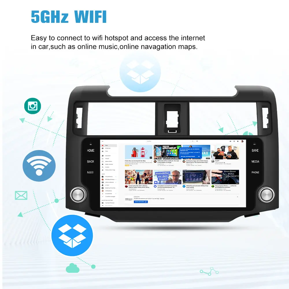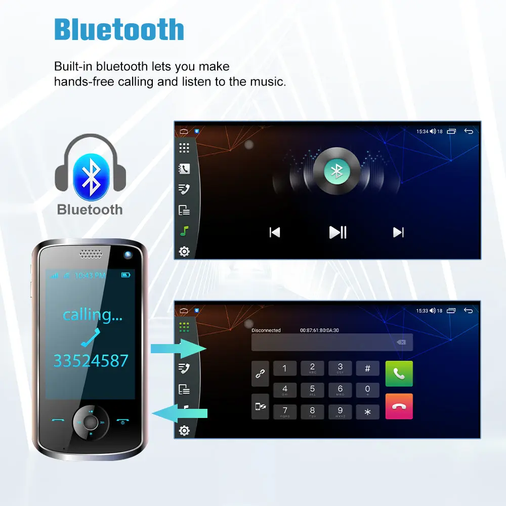 - 【Wireless CarPlay/Android Auto】 Wireless CarPlay and Android Auto can be used by Bluetooth connection; Support voice control, and can access your phone functions such as: music, navigation, calls, messages etc.