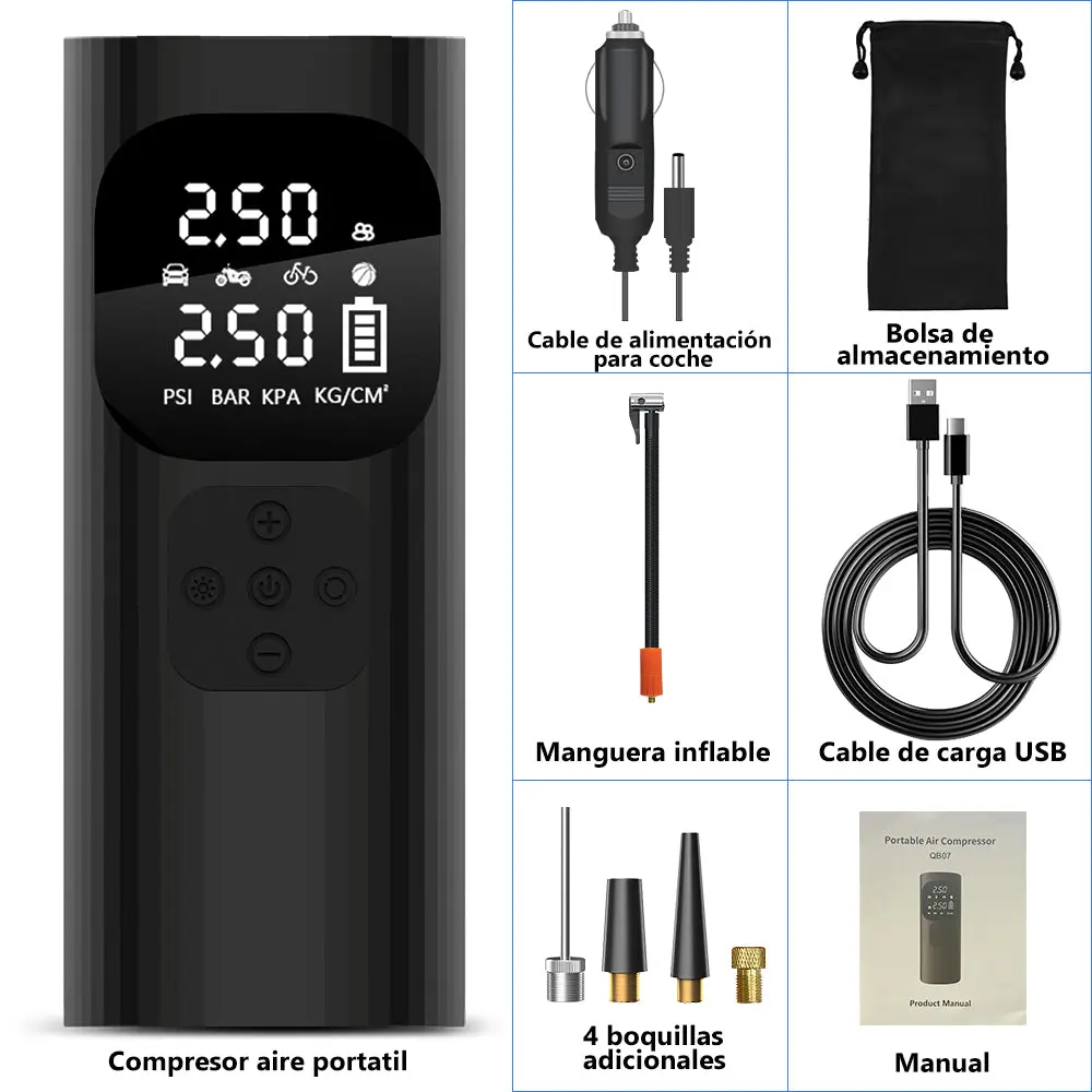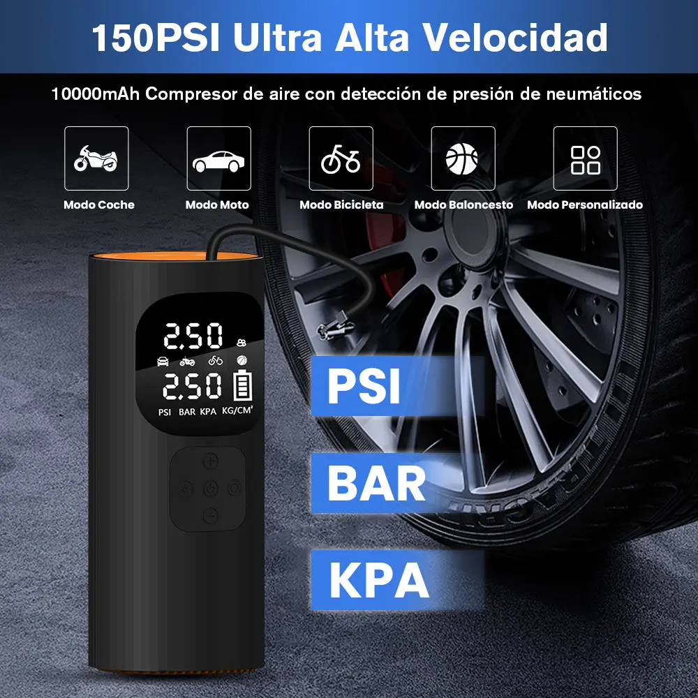 AWESAFE 10000 Mah Inflador de Neumáticos Compresor de Aire Portátil con Pantalla Digital LED para Coches Bicicletas Motos y Balones Anillo de natación