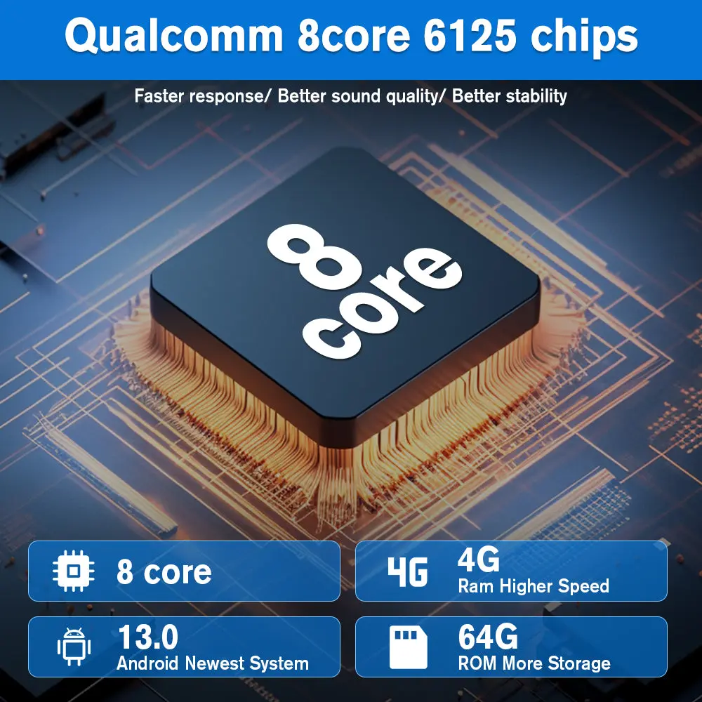 【Qualcomm 6125&Android 13 System】Qualcomm Snapdragon 6125 operating system,ensure smooth and fast operation.Provide you with a more comfortable experience and convenient operation.Android 13 car radio with 8 Core CPU 4GB RAM + 64GB ROM.12.1 Inches IPS capacitive touch screen, high resolution.