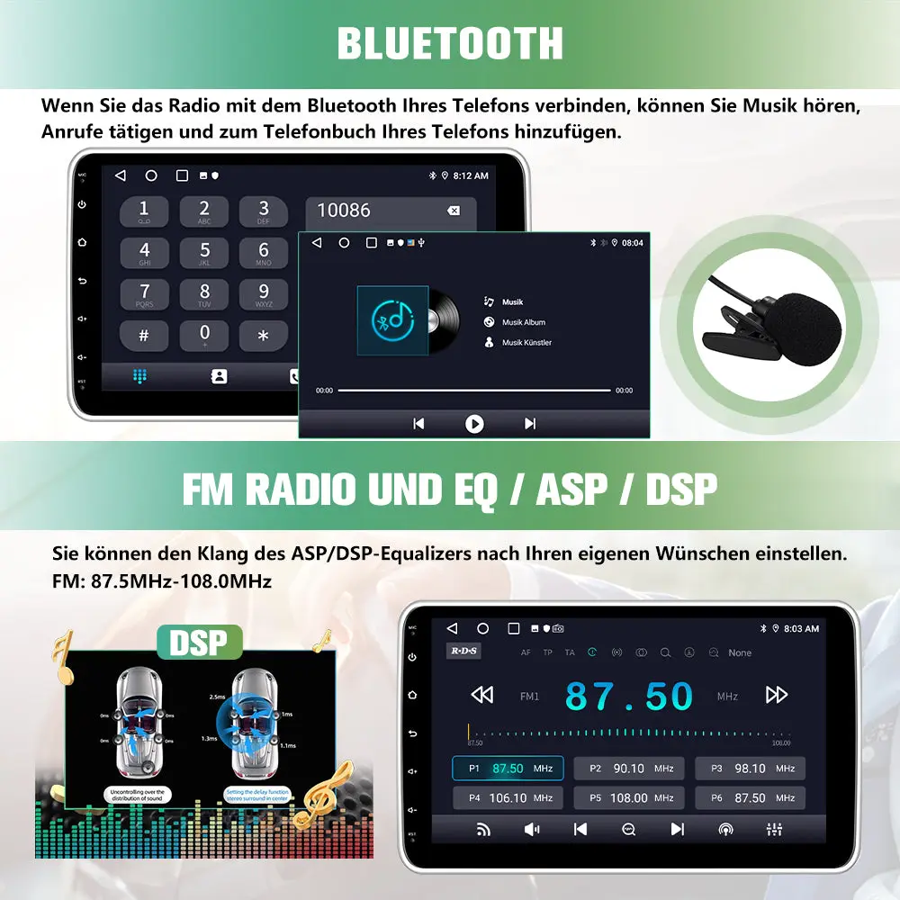 Android 8.8 Zoll AutoRadio 4G+64G für BMW 1 Serie E81 E82 E87 E88 2005-2012 mit ClC system Built in Carplay/Android Auto SWC BT AM/FM