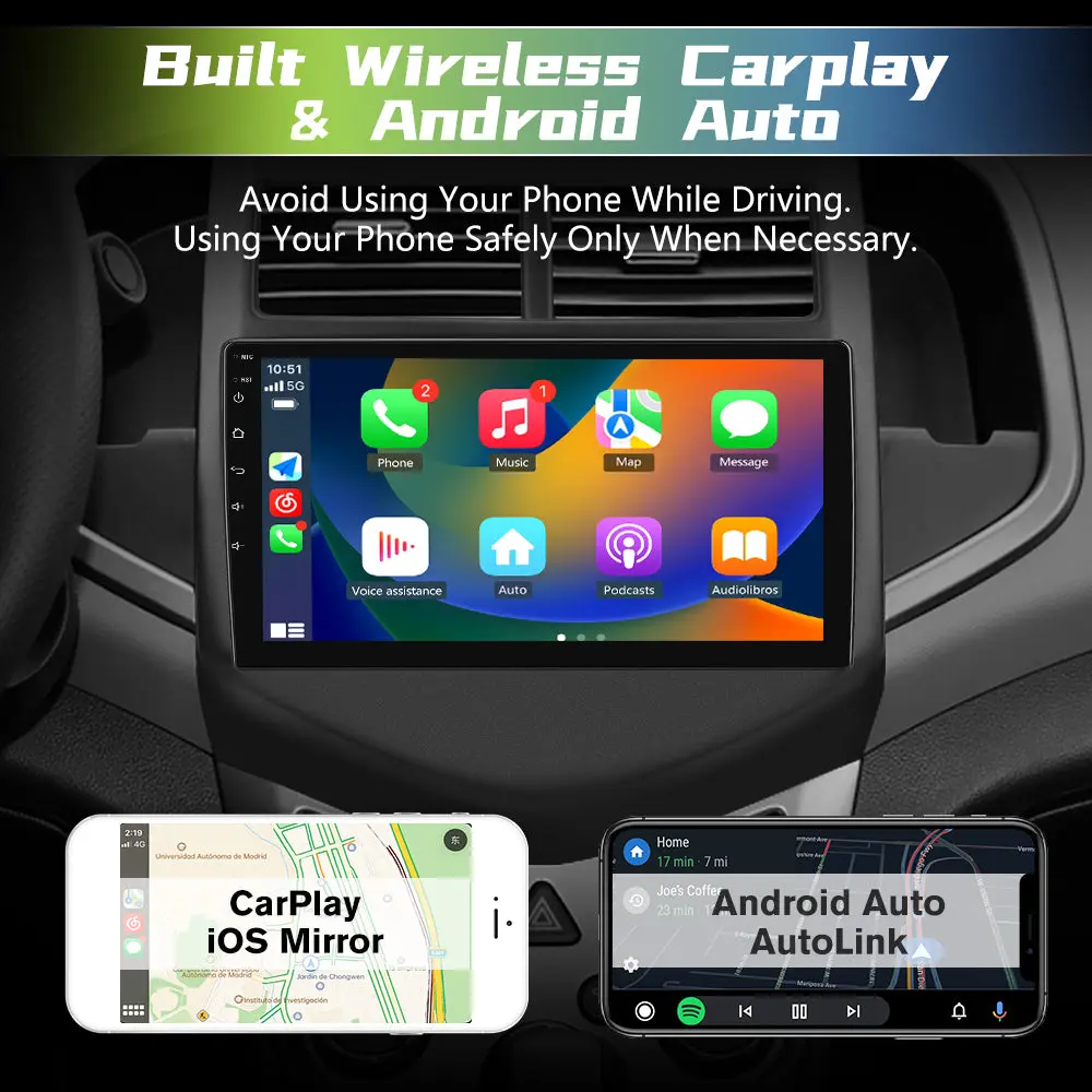 AWESAFE 2+32G Car Radio Stereo For Chevrolet Aveo Sonic 2011-2015 Android 13 9 inch Touchscreen with Wireless CarPlay & Android Auto,Bluetooth,Backup Camera