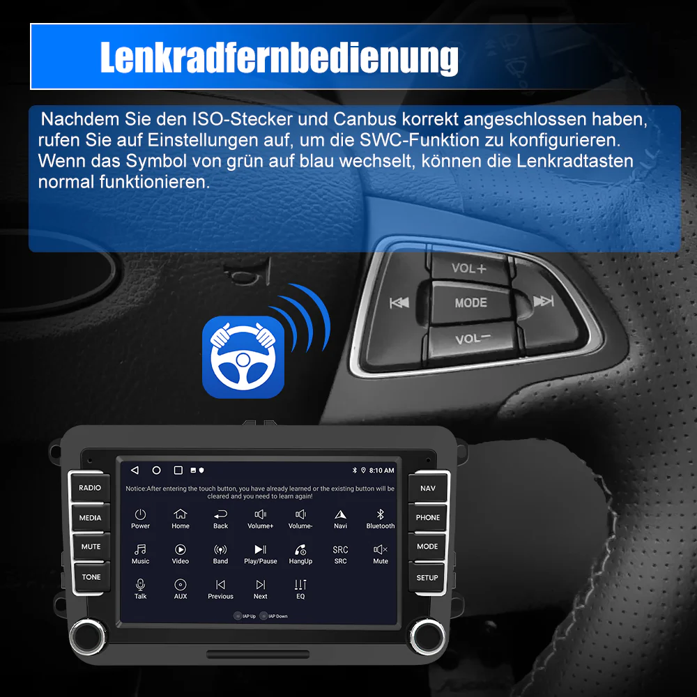 - 【Wifi / WLAN】Das Radio eingebautes Wlan-Modul. Wenn Sie das Radio mit WIFI oder Hotspot verbinden, können Sie jede gewünschte App in APP Store herunterladen und Online-Karte verwenden. Sie können auch jederzeit und überall Nachrichten durchsuchen und Online-Videos ansehen.