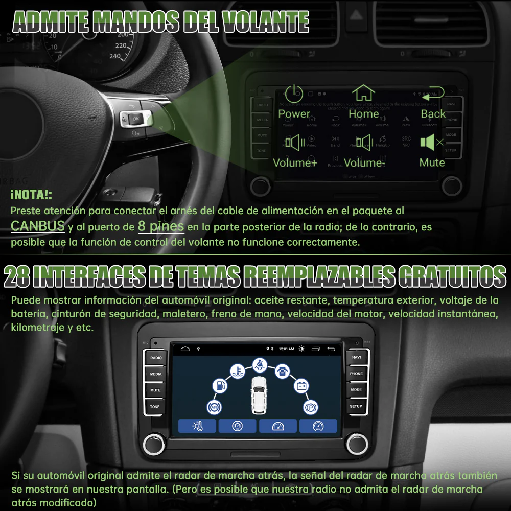 - 🏎️【Sirve para coches de VW】Comprobaría el tamaño de la radio y el modelo y el año del modelo en la imagen, para algunos modelos de Seat león, de Seat Altea, quizás necesite comprar un marco adicional para adaptarse. (No vendemos marcos). Los automóviles posteriores a 2014 pueden requerir adaptador adicional. Después de confirmar que su automóvil no es compatible con los adaptadores en nuestro paquete,le enviaremos el compatible si es necesario.