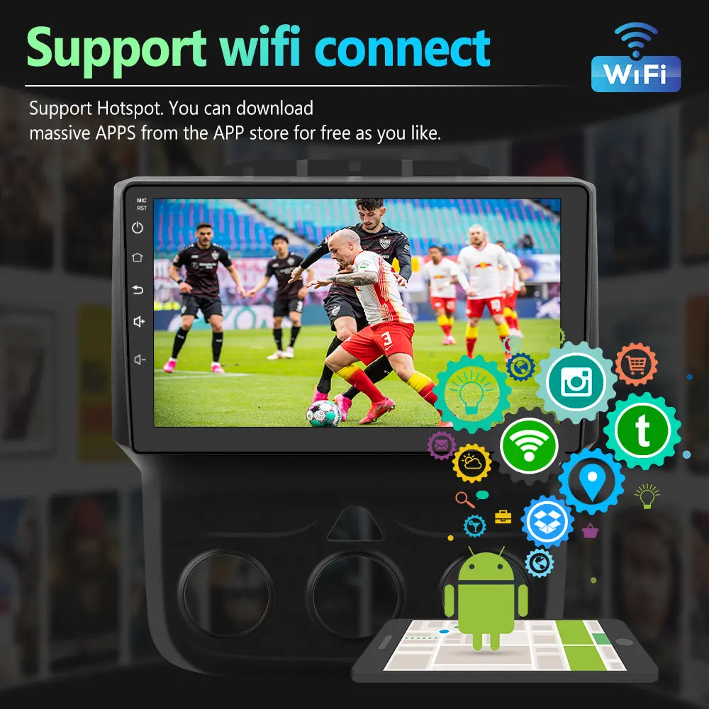 - 🚘【GPS Navigation & WiFi Connect】Built-in Offline Map of North America. Online map also be supported, after connected to WiFi, you can use GPS Navigation at anywhere. This item allow install or delete android apps from Application Store, as the same as smart phone.