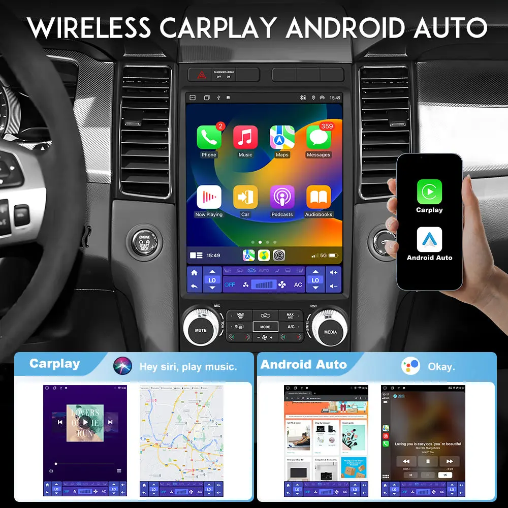 - 【Wireless CarPlay and Android Auto】The smart way to use your phone in your car is to connect your iPhone/Android device to the Android car stereo via Bluetooth. Using the smart voice assistant or the touch display, you can get directions, make calls, send and receive messages, enjoy music, and more.