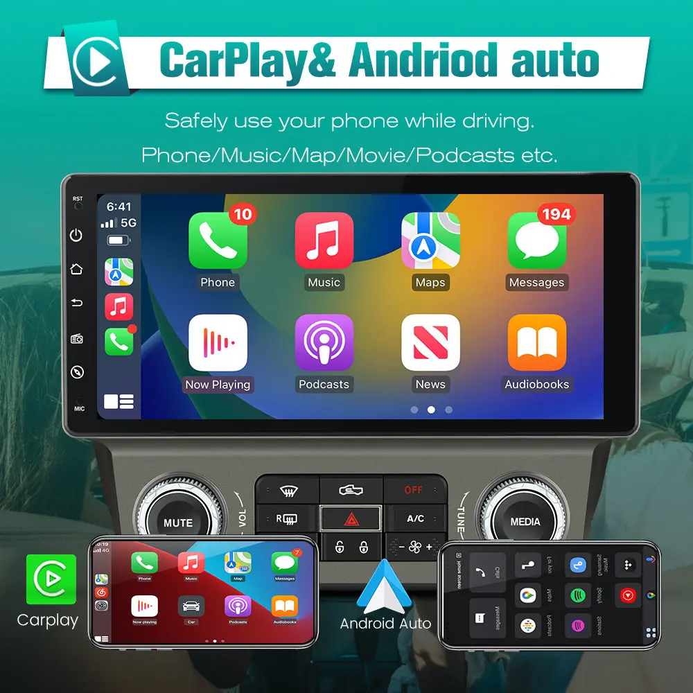 - 🚘【CarPlay & Andriod Auto】Wireless Carplay for iPhone can be used by Bluetooth connection; Wired Android Auto can be used by original data cable connection. Support voice control, and can access your phone functions,such as music,navigation,calls, messages etc.