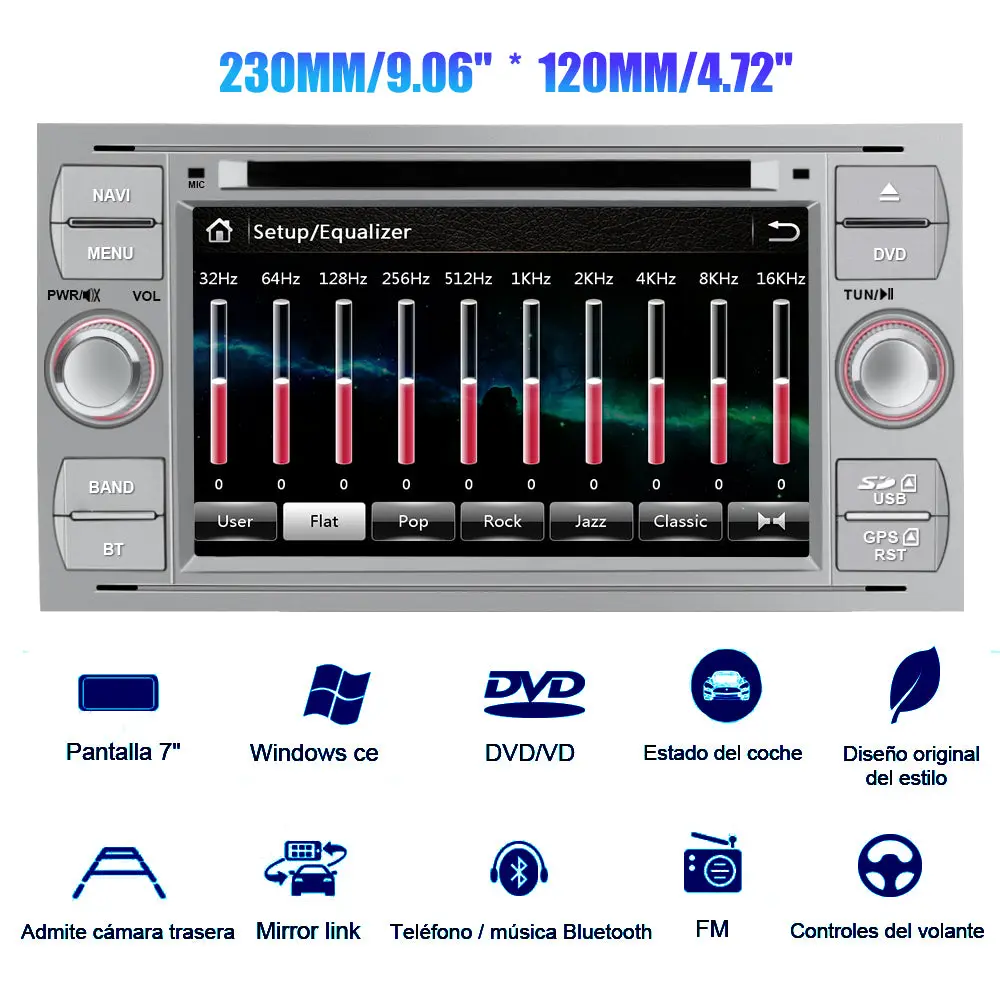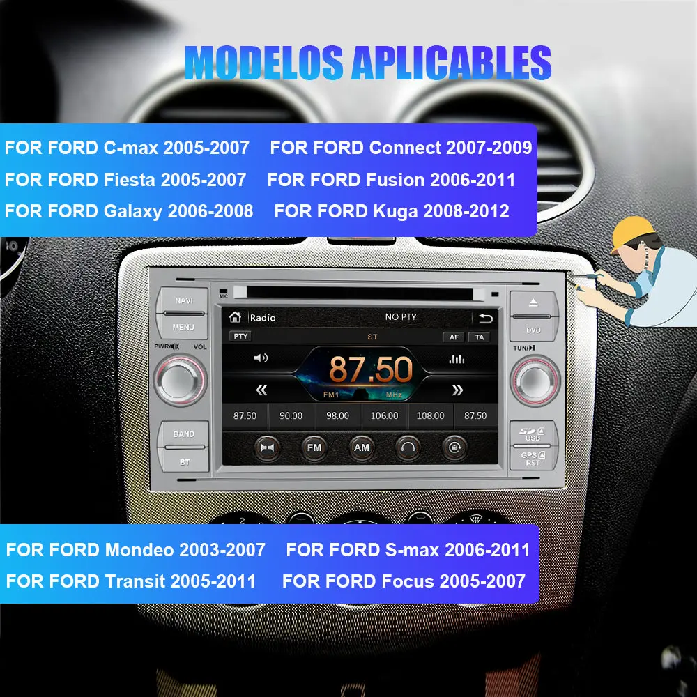 - 🚕【Necesaria radio para Ford】 Modelos aplicables de Ford: Para Ford Focus 2005-2007; Para Kuga 2008-2012; Para C-Max 2005-2007; Para S-Max 2006-2011; Para Fiesta 2005-2007; Para Fusion 2006-2011; Para Transit 2005-2011; Para Connect 2007-2009; Para Ford Galaxy 2006-2008; Para Mondeo 2003-2007. Panel frontal tamaño 230 mm x 120 mm, podría confirmar si el tamaño es adecuado antes de comprar!
