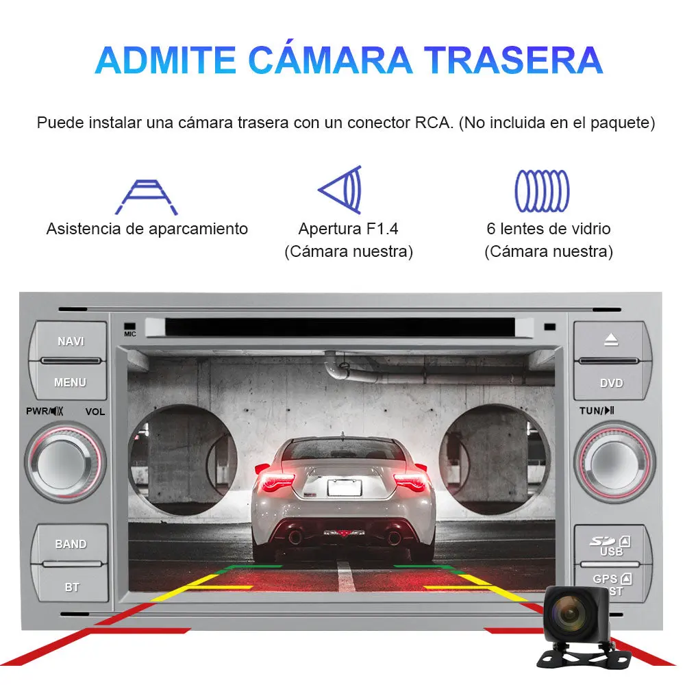 - 🚕【Ayuda del aparcamiento】 Puede conectar la cámara trasera de marcha atrás (no incluida), la cámara trasera puede ofrecerle la asistencia necesaria en la pantalla para retroceder al aparcar.
