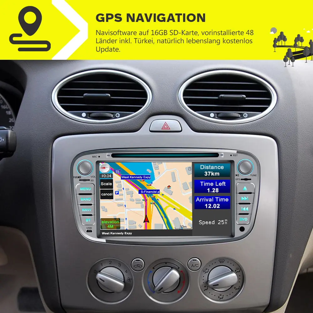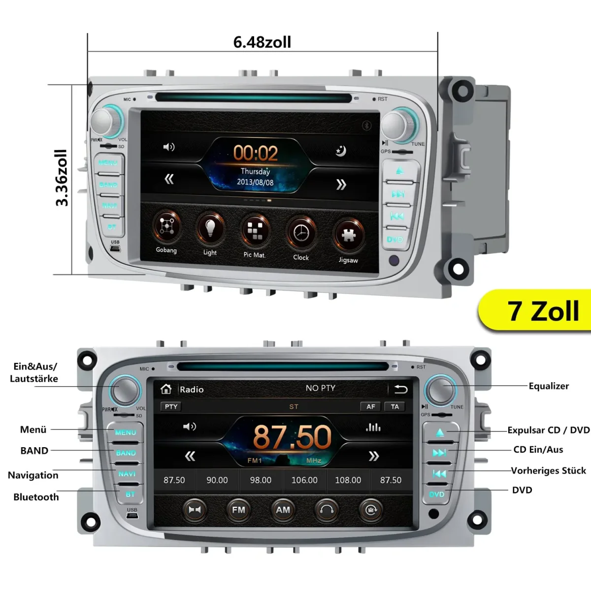 Radio mit Navi für Ford: Multimediales Autoradio mit WindowsCE Betriebssystem mit übersichtlichem (18cm)7 Zoll Touchscreen, DVD-Player, multimedia-fähigem USB-Port und SD-Slot sowie AV-Ein- und Ausgängen. Bluetooth und integriertes Mikrofon zur Nutzung als Freisprechanlage. Vor der Bestellung, bitte messen Sie ob die Größe des Radio mit Ihren Radio passt.