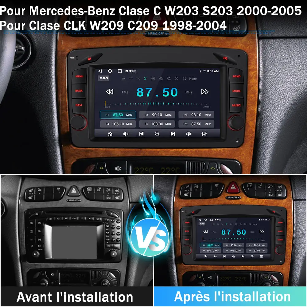AWESAFE 8 Cœurs Autoradio 7 pouces Android 13 6+128 Go avec Bluetooth/DSP/GPS/Android Auto & CarPlay sans fil – pour Pour Mercedes-Benz Clase C W203/S203 & Clase CLK W209/C209