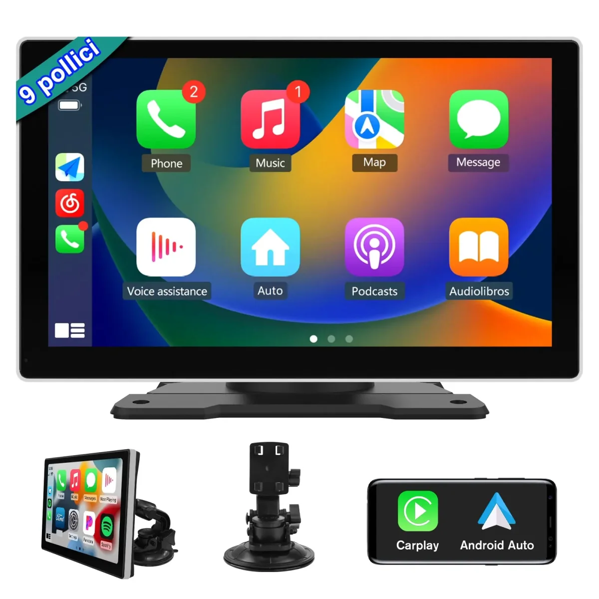 【CarPlay Auto】Questa è un’autoradio che può essere regolata sul cruscotto è estremamente portatile. Puoi portarlo con te e prevenire i furti. Ha un touch screen IPS da 9 pollici ad alta definizione e non è dannoso per gli occhi.