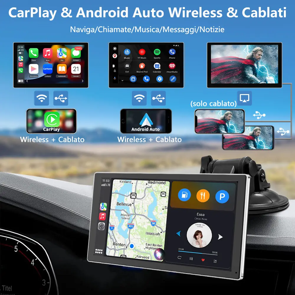 【CarPlay e Android Auto】Compatibili con smartphone con sistemi IOS e Android, supportano le funzioni CarPlay e Android Auto cablate o wireless.