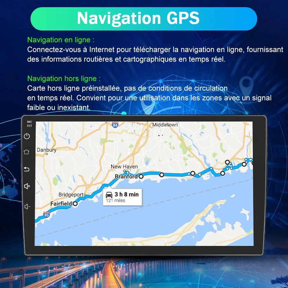 - 【Navigation GPS & Wi-Fi & Fonction 4G】Navigation hors ligne et en ligne pour votre choix!Carte hors ligne pre-installé.Après avoir connecté l’antenne GPS dans notre paquet, vous pouvez utiliser les coordonnées/code postal/adresse/POI et d’autres méthodes pour planifier votre itinéraire.Vous pouvez également télécharger des applications de navigation en ligne via WiFi.De plus, vous pouvez télécharger d’autres APPs/musiques et vidéos via WiFi!