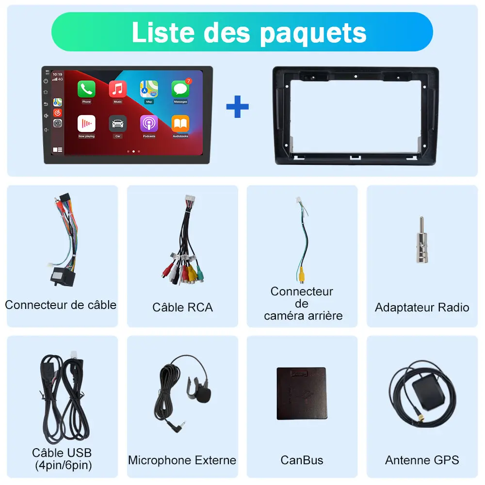 - 【Carplay & Android Auto Intégré au Choix】 Autoradio prend en charge l’interaction avec les smartphones, Carplay filaire/sans fil, Android auto filaire/sans fil, Mirrorlink, Airplay, et l’autoradio permet aux utilisateurs de passer des appels et d’écouter de la musique. Profitez d’un accès instantané aux cartes, à la musique ou aux catalogues en ligne.