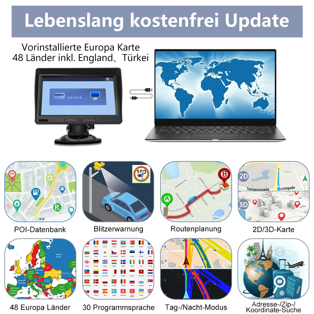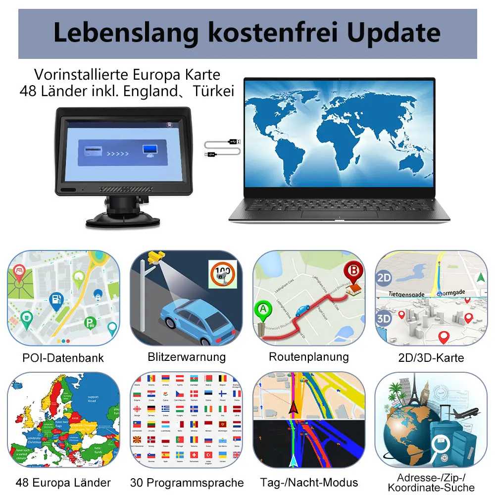 - 【Lebenslang kostenlos Karten-Updates】Kartenabdeckung für 48 europäische Länder enthalten Türkei. Genießen Sie hochwertige Offline-Karten – überall und jederzeit. Die Offline-Karten werden für die GPS Navigation ohne Internetverbindung auf der Navi gespeichert. Mit der Navi haben Sie immer die akutellsten Karten.