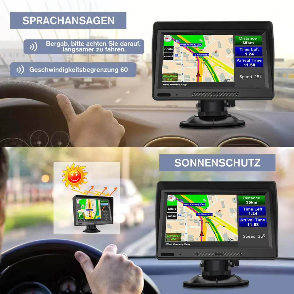 - 【Routenplanung und Sprachansage】Das Navigationssystem bietet dir eine Routenführung per Sprachausgabe. Geschwindigkeitswarnungen zeigen Ihnen die aktuelle Geschwindigkeitsbeschränkung und die Änderungen der Geschwindigkeitsbeschränkungen auf dem Weg vor Ihnen.