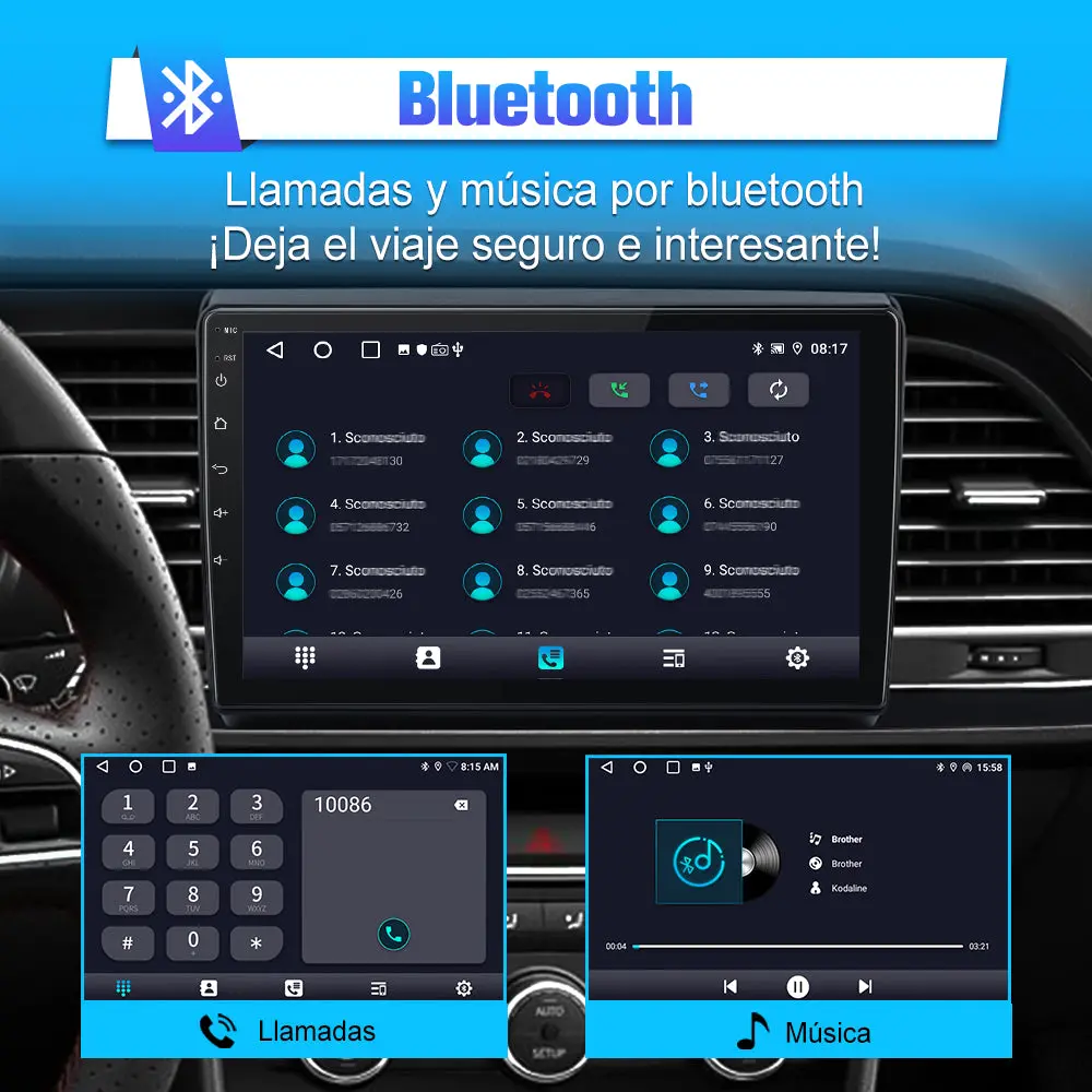 - 🚥Mejore su experiencia de conducción con las funciones Bluetooth de primera clase de nuestra pantalla de visualización para automóviles: transmita su música favorita, haga llamadas con manos libres, use comandos de voz y disfrute del control inalámbrico, todo desde una interfaz sencilla.