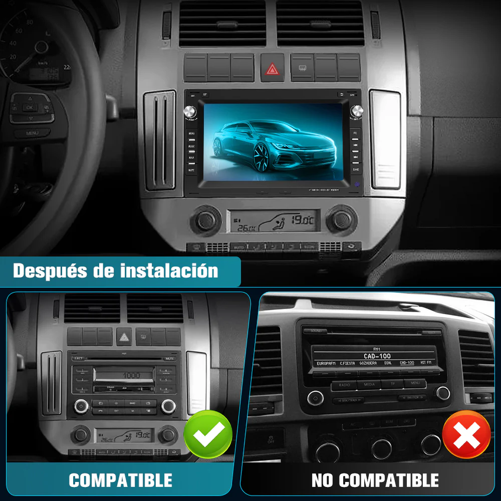 - 🚗【Android 13 Radio para VW】La radio lleva el sistema de Android 13.0 (la versión más últma actualmente) y pantalla táctil de 7 pulgadas. Modelos compatibles: para Polo, para Passat, para Golf, para T5, para Ibiza y etc.. NOTA: aunque algunos modelos aparecen en la lista de modelos aplicables, el tamaño del control central puede no ser adecuado para esta radio. Verifique si las dimensiones son adecuadas antes de la compra, por favor.