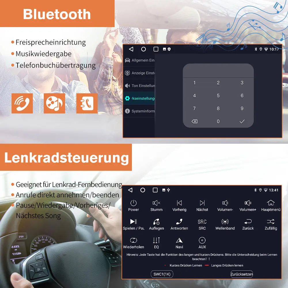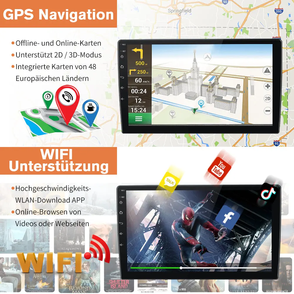 【Navigation】Navigieren Sie online und offline mit einer Vielzahl von Navigationsanwendungen (z.B. integrierte Offline-Karten, Online-Maps, und prinzipiell kann jede Navigationssoftware installiert werden, die auf Android basiert), mit der Option, Offline-Karten kostenlos zu aktualisieren.