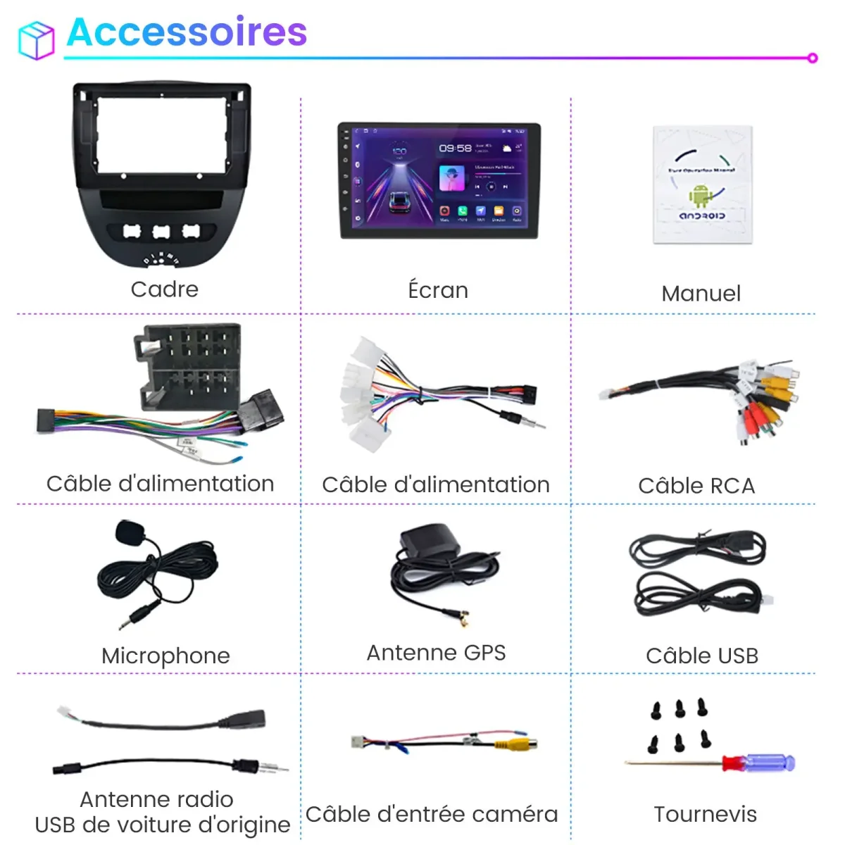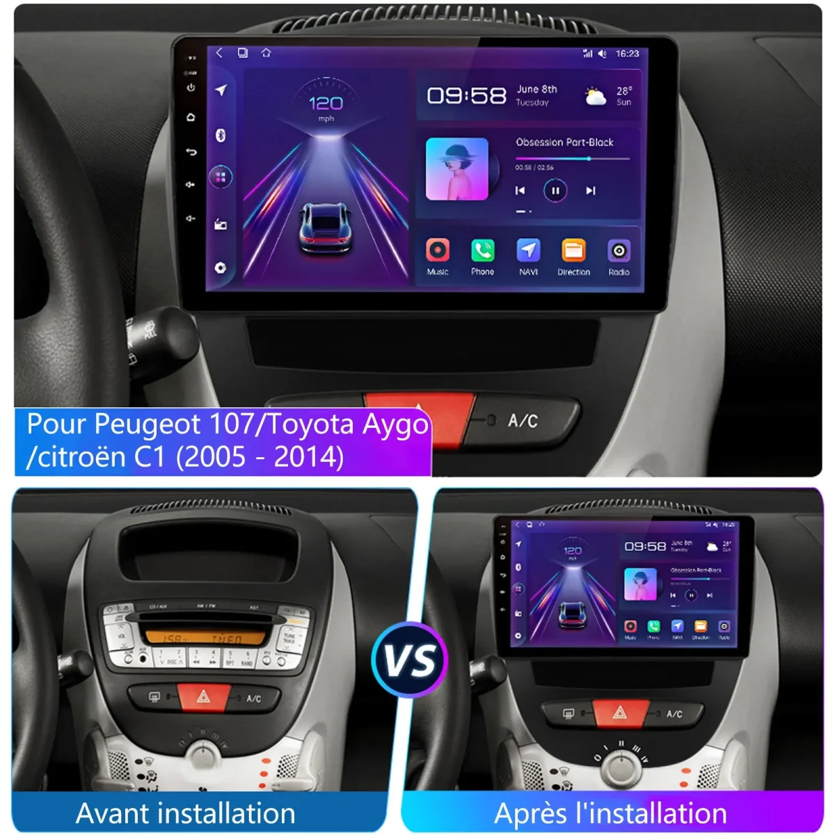 - 【Autoradio pour Peugeot】Autoradio compatible pour Peugeot 107 Toyota Aygo Citroen C1 2005 – 2014, prend en charge les informations d’origine de la voiture, prend en charge l’amplificateur de puissance, écran tactile capacitif 2,5D haute définition de 10.1 pouces, résolution 1024*600, puissance : 4*45W, intégré DSP pour ajuster le son, rendant la conduite agréable.