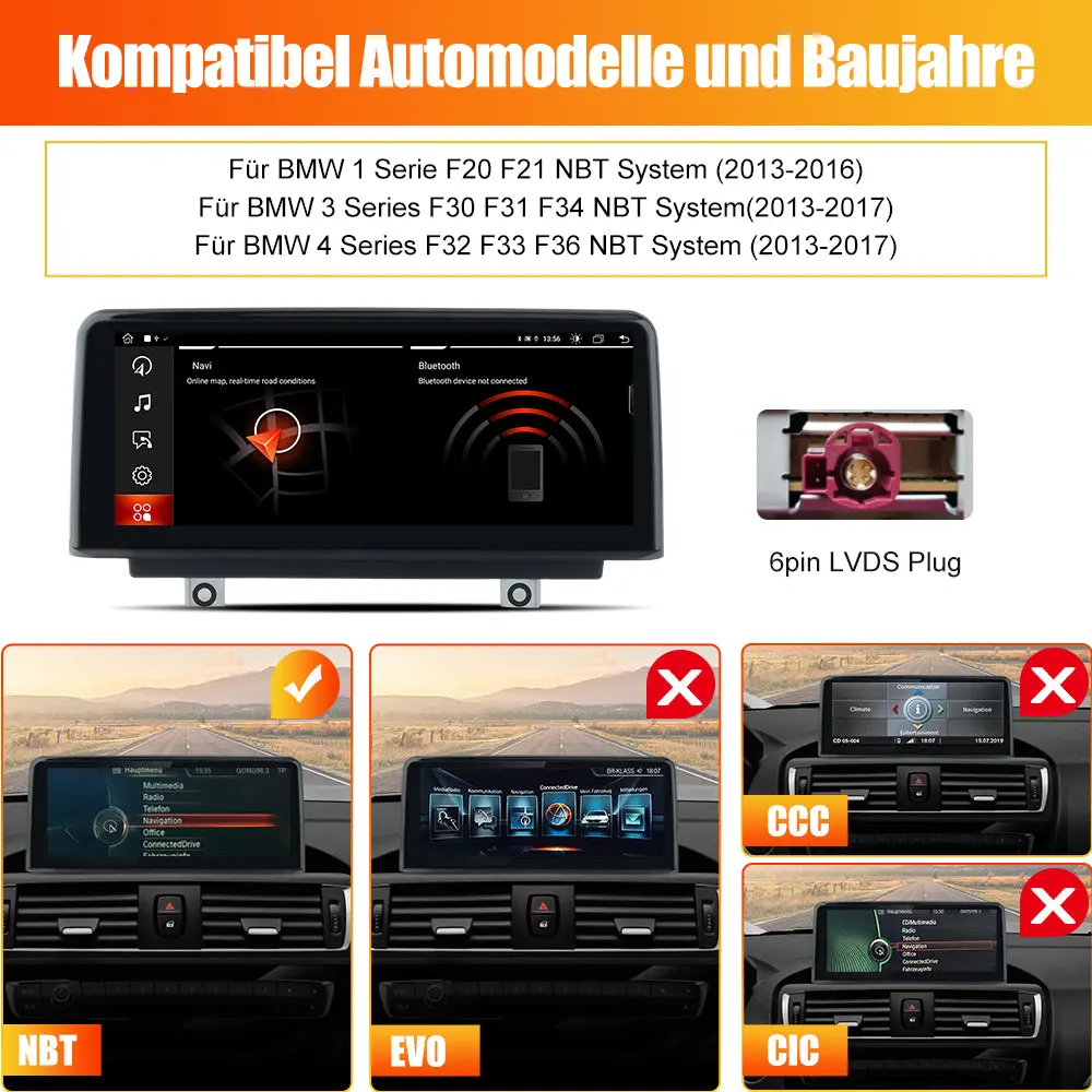 AWESAFE Autoradio Für BMW 1er F20 F21(2013-2016) /3er F30 F31 F34 & 4er F32 F33 F36(2013-2017) NBT System, Carplay &Android Auto Car radio mit 10,25 Zoll Touch-Screen