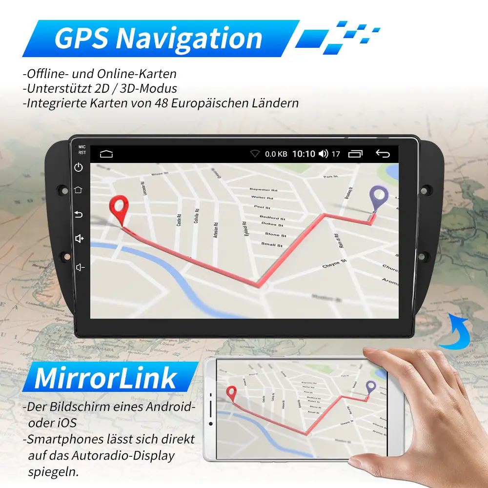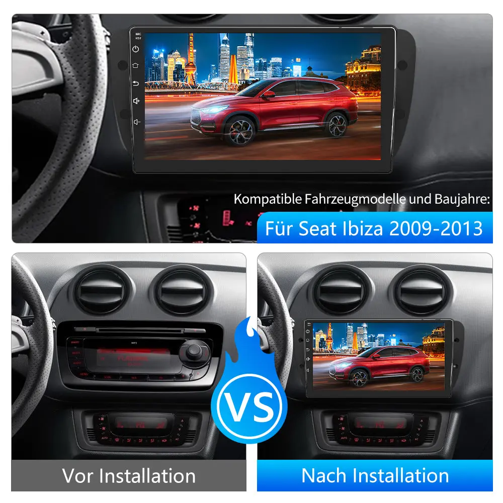 - 【Android Autoradio】mit Blende, für Seat Ibiza 6j Baujahr 2009-2013. Das Radio ist mit riesigem 9 Zoll Touchscreen und einem Android 13.0 Betriebssystem(2GB RAM + 32GB ROM, Quad-Core) und WIFI-Empfänger ausgestattet. Sie können eine Verbindung zum Internet herstellen (z. B. über die Hotspot-Funktion Ihres Smartphones)