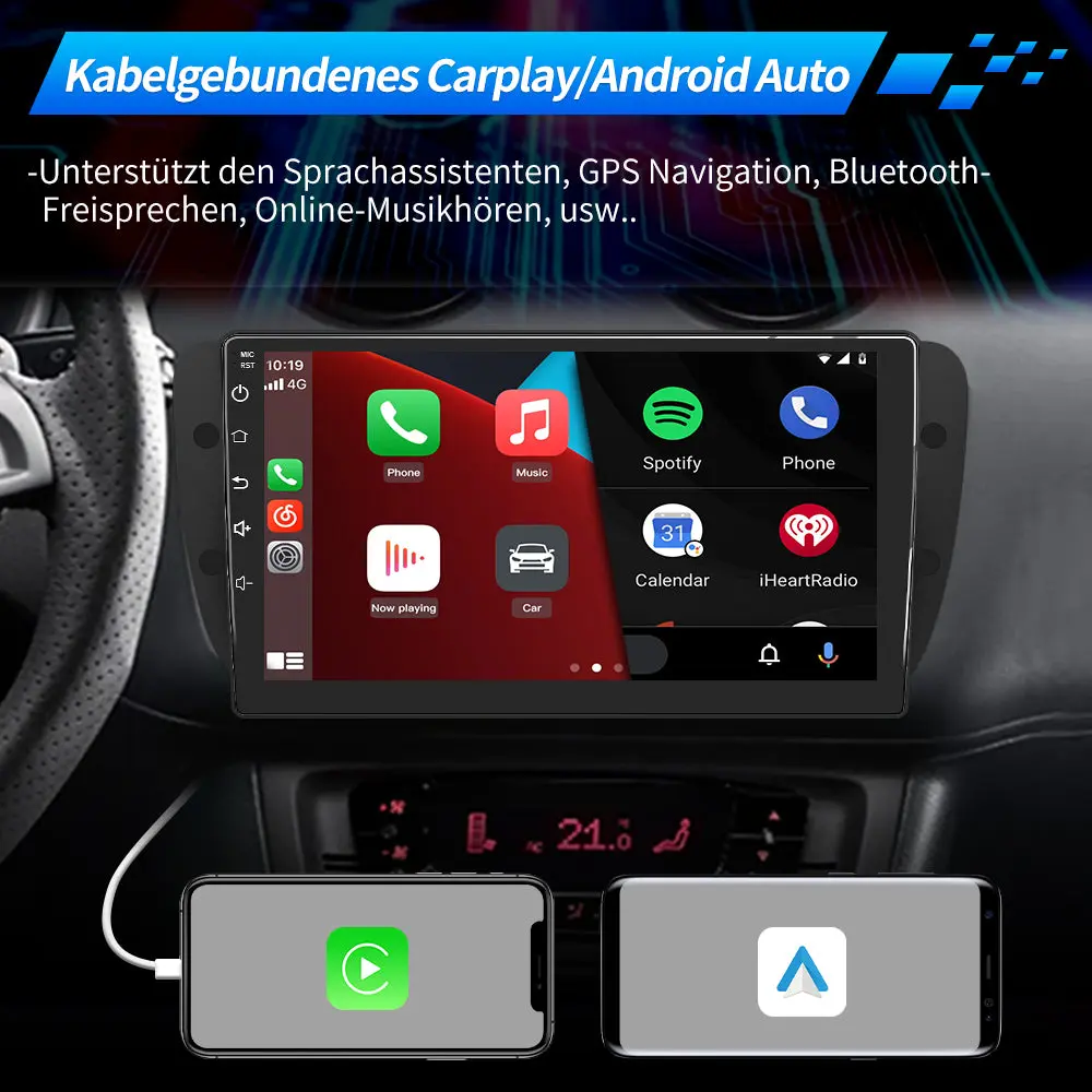 - 【Unterstützt kabelgebundenes Carplay / Android Auto】Verbinden Sie die USB-Kabel des Radios über das USB-Datenkabel des Handys (Empfohlen wird das Original-USB-Datenkabel), Sie können ganz einfach die CarPlay- oder Android Auto-Funktion verwenden. Nachdem die Verbindung erfolgreich war, Sie können Funktionen wie Sprachassistenten und Online-Karten verwenden oder hören Sie Ihre Lieblingsmusik über Apps wie Spotify hören.