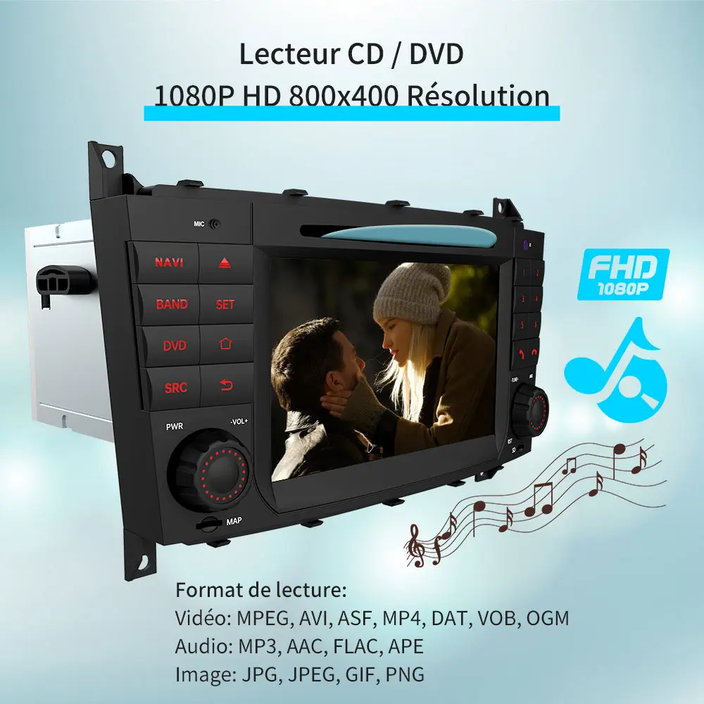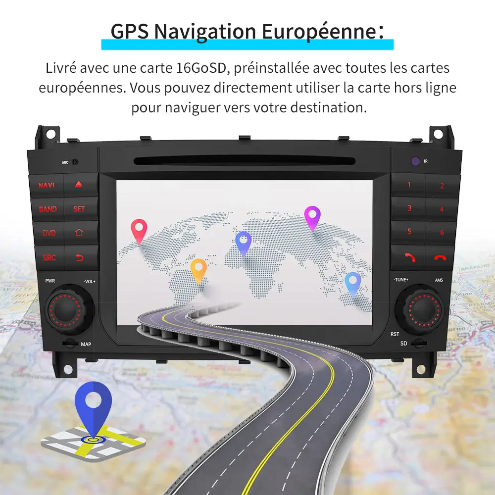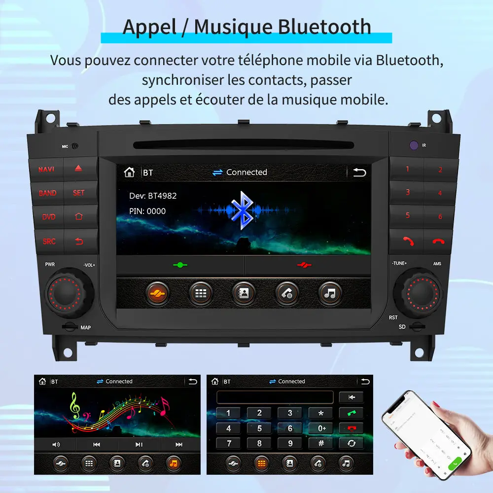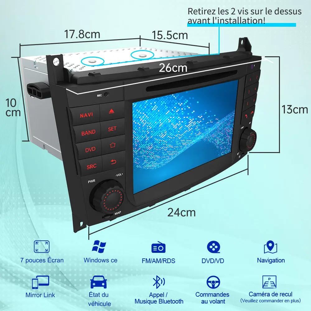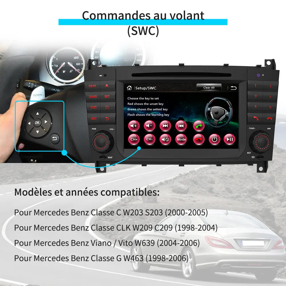 AWESAFE Autoradio pour Mercedes-Benz Classe C W203 S203 (2000-2005) Classe CLK W209 C209(1998-2004) Viano/ Vito W639(2004-2006) Classe G W463(1998-2006) intégrée SWC Bluetooth AM/FM