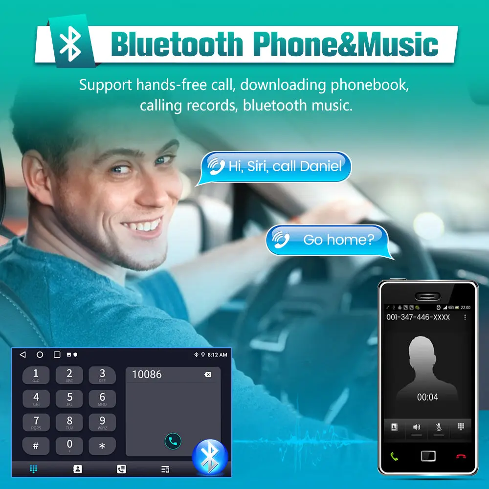 • [Built in Carplay/Android Auto] Supports CarPlay/Android Auto connect via Bluetooth,project the contents of your phone to the large screen of the host, and you can share your favorite 1080P videos, high-definition pictures, etc. Easily access your phone to make calls, navigate, play music or manage other apps via Siri controls.