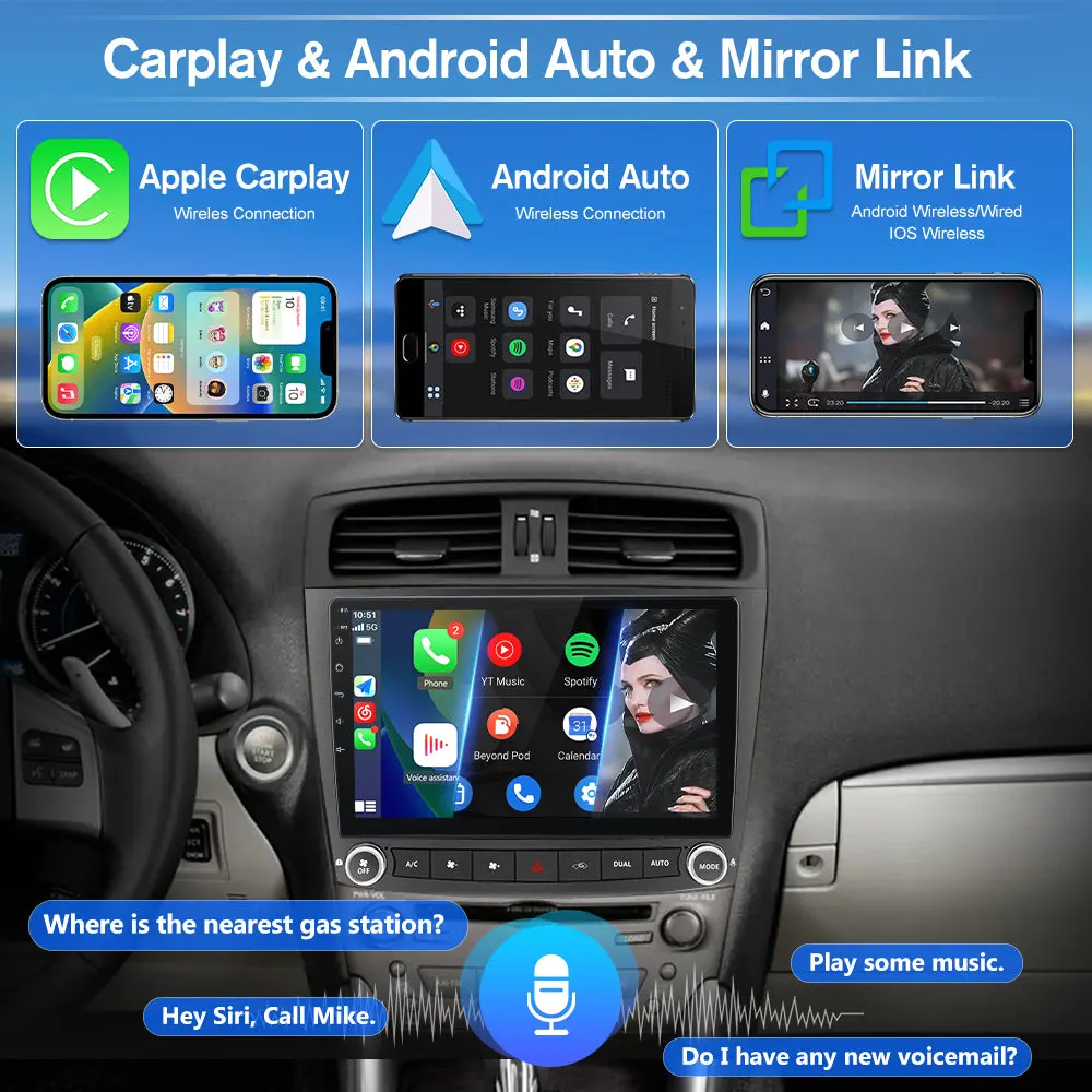 - 【Wireless Carplay Android Auto】 This radio for 2005-2012 Lexus is compatible with wireless CarPlay and Android Auto. It connects to a mobile phone, allows access to the mobile phone address book, mail, notifications, map navigation, music, video, and other information, and allows voice control. It supports the IOS/Android mirror link function, so you can mirror the phone interface to access all the functions on your phone through the big screent