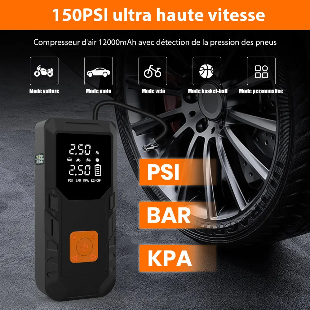 AWESAFE Compresseur à Air Portatif,Gonfleur Pneus Voiture sans Fil avec LED et Port C USB 150 PSI, Batterie Rechargeable, Inflation Rapide, Compresseur, Arrêt Automatique, pour Voiture, Vélos et Motos