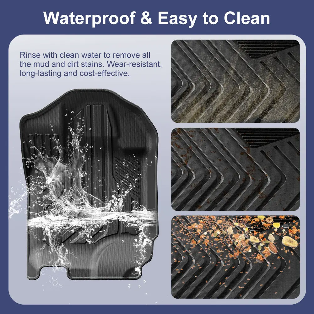 AWESAFE Floor Mats For Ford F150 2015-2025 Supercrew Cab w/Carpet & w/out Fold Flat Storage,All Weather Car Liners Mats,Front & 2nd Row, 3-pc Black