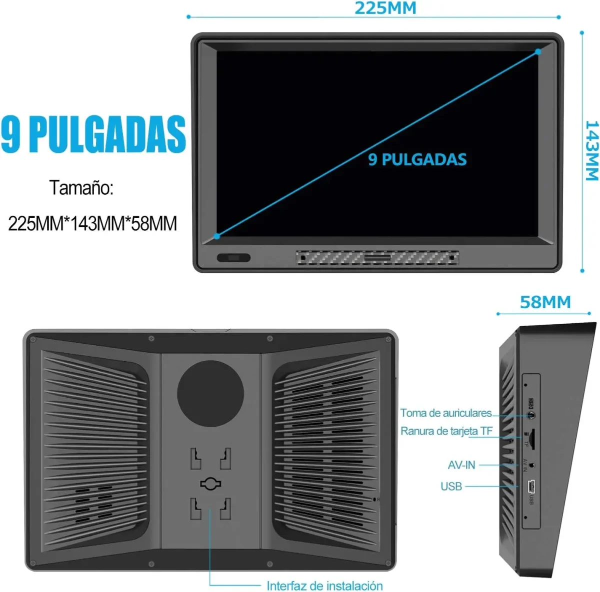 🚚Pantalla HD de 9 pulgadas con claridad superior
