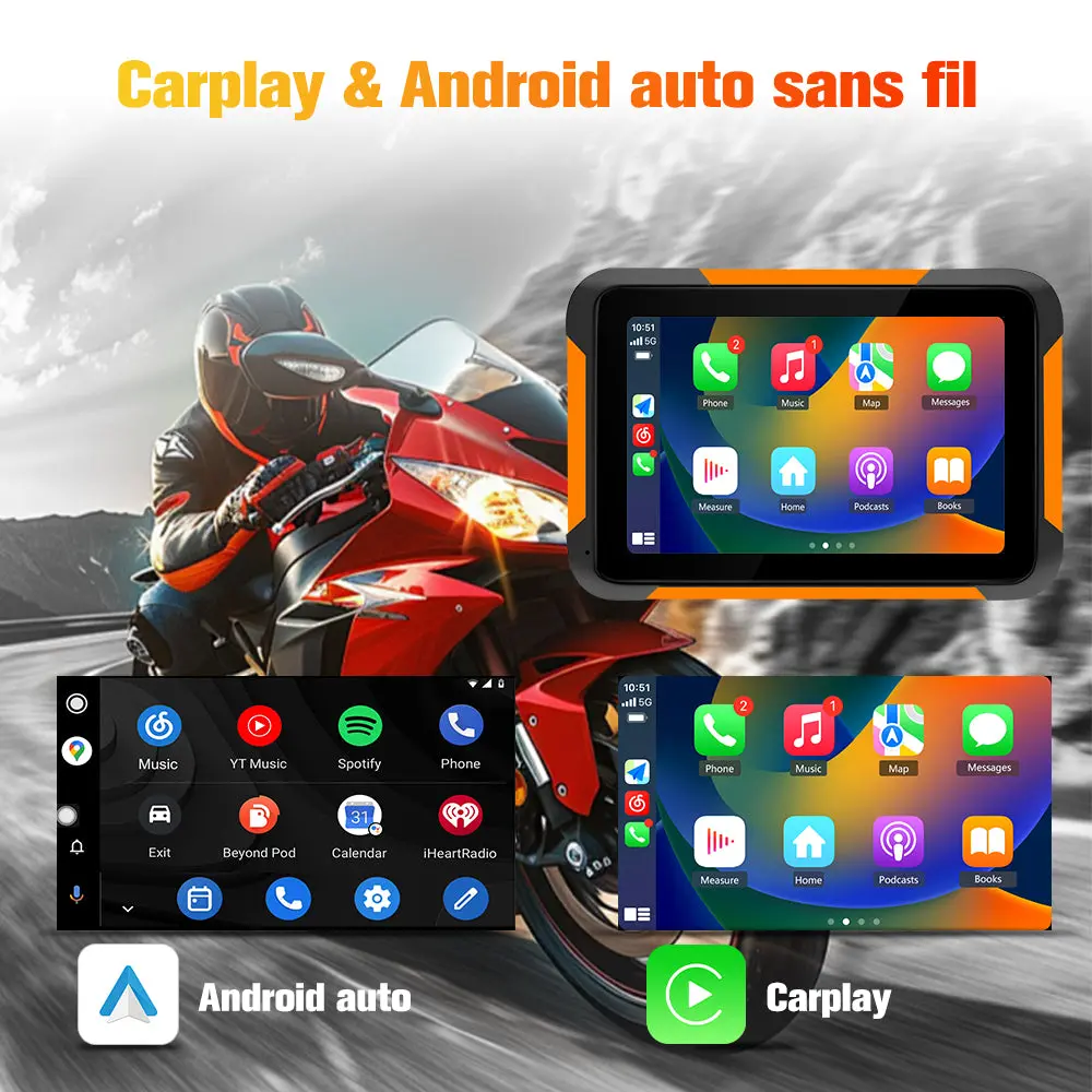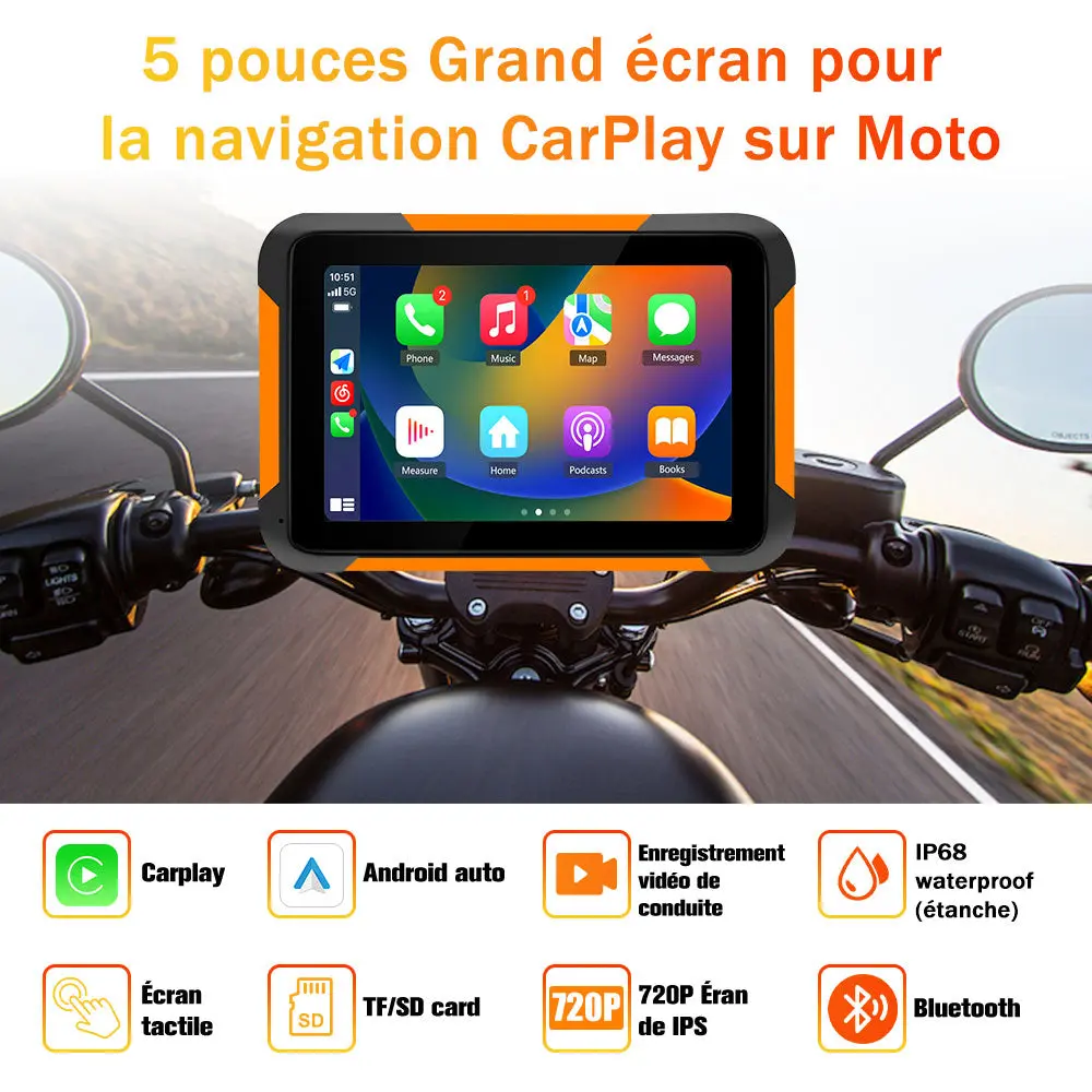 - 【Écran Étanche IP68 de 5 pouces 】Moto Carplay est équipée d’un écran IPS haute définition de 5 pouces et parasol avec une luminosité, qui peut être facilement vu même en plein soleil éblouissant. L’indice d’étanchéité IP68 garantit la stabilité robuste de l’écran tactile Carplay de moto dans des conditions météorologiques défavorables. GPS Moto dispose de processeurs hautes performances intégrés, d’un positionnement précis et d’une vitesse de réponse rapide pour fournir sécurité de conduite.