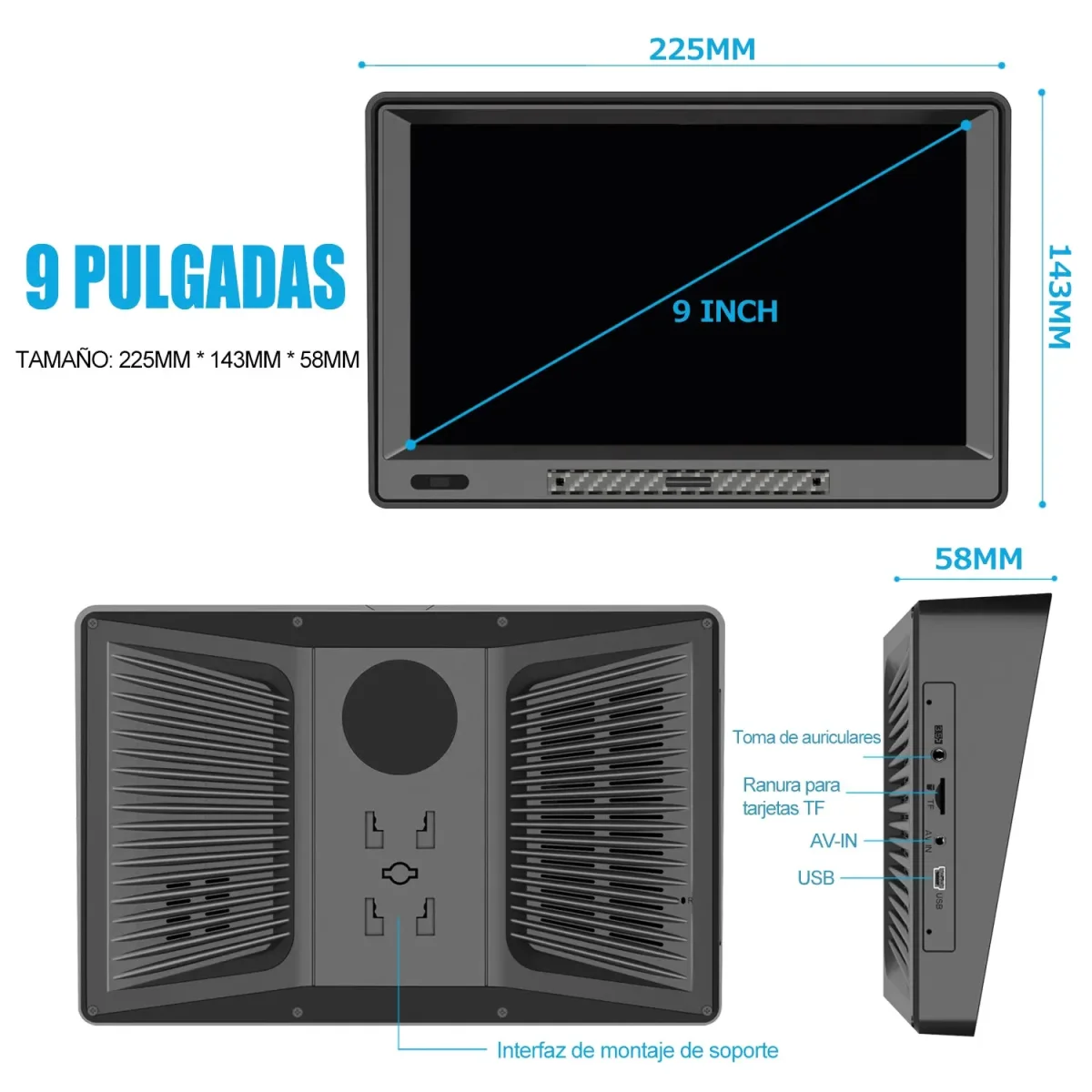 🚥Pantalla Táctil de 9 Pulgadas con Visera Integrada