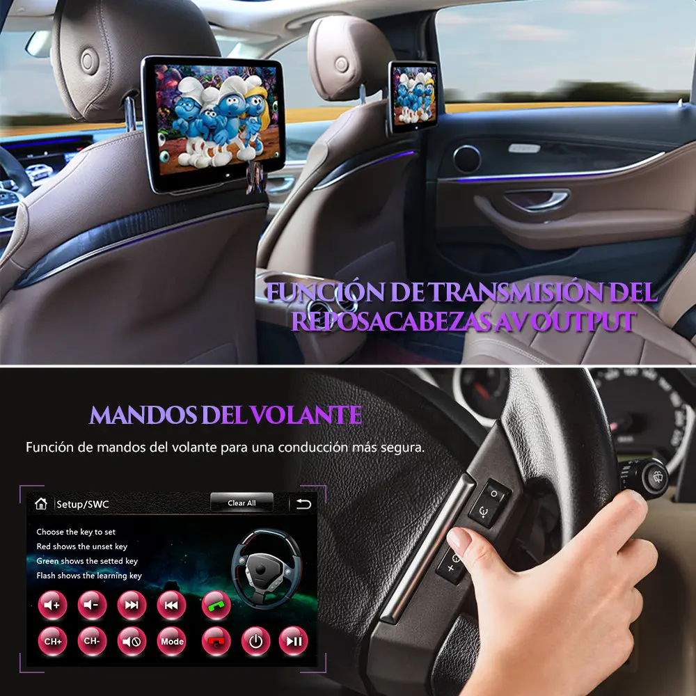 - 🚗【Funciones super prácticas】👍1)Micrófono incorporado, manos libres con Bluetooth. 👍2) Mandos del volante (Para algunos cochess que pueden usar canbus). 👍3)Puede transferir el vídeo al reposacabezas. 👍4)Duplicar la pantalla de su Android Smartphone(No sirve para iPhone) 👍5)Función RGB, puede elegir el color del botón según su favorito. 👍6)Puede navegar y reproducir más medios a través de SD,CD,DVD,Bluetooth,USB.