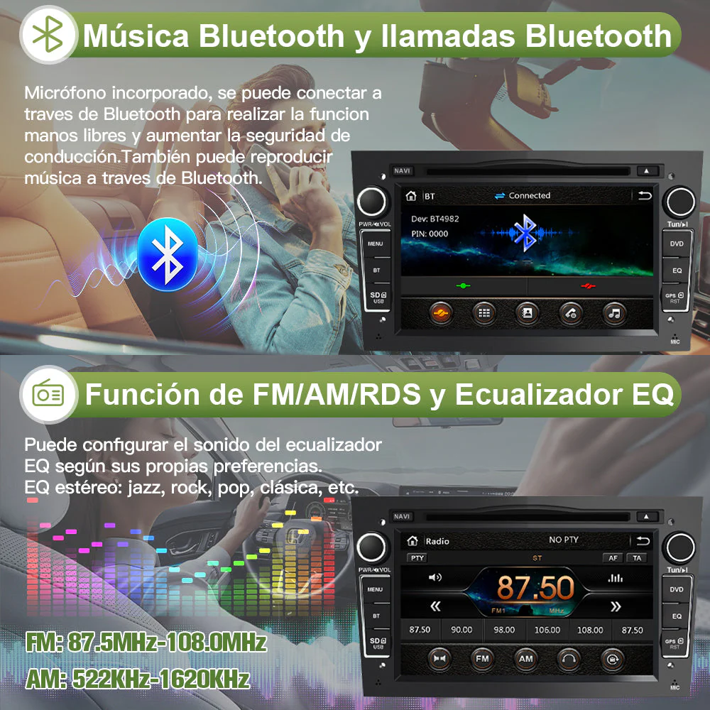 - 🚓【Sus orejas serán disfrutadas】Sintonizador de FM / AM estéreo digital de alta calidad (RDS), puede buscar emisoras de radio de forma automática / semiautomática y precisa. Puede escuchar las noticias, música, información sobre viajes y disfrutar de su tiempo de conducción todos los días. Puede controlar el volumen de cada altavoz antes y después. EQ estéreo: jazz, rock, pop, clásica, etc.
