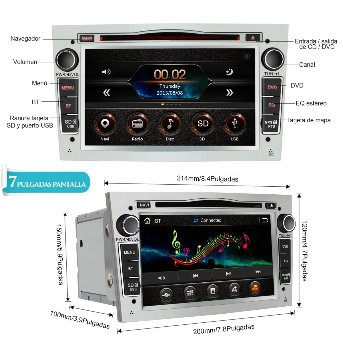 - 🚕【Necesaria radio Opel para su coche】 Marcas aplicables: Para Vivaro, para Antara, para Vectra, para Sigum, para Combo, para Zafira, para Astra, para Corsa, para Meriva. (Si no puede utilizar los mandos del volante para su coche, le enviaremos otro tipo de canbus.) Podría ver la imagen de los coches adecuados. El tamaño es: 214mm*120mm*200mm.
