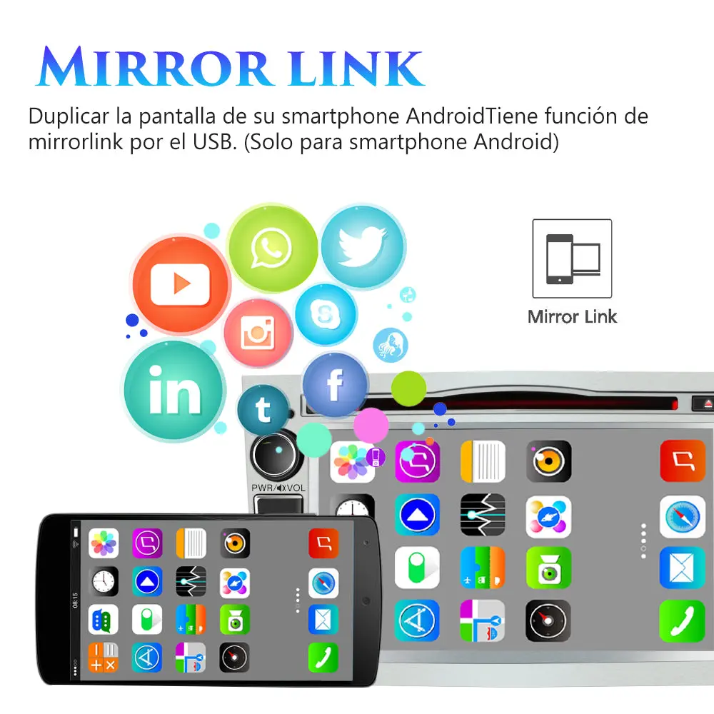 - 🚕【Funciones super prácticas】👍1)Micrófono incorporado, manos libres con Bluetooth. 👍2) Mandos del volante (Para algunos cochess que pueden usar canbus). 👍3)Puede transferir el vídeo al reposacabezas. 👍4)Duplicar la pantalla de su Android Smartphone(No sirve para iPhone) 👍5)Función RGB, puede elegir el color del botón según su favorito. 👍6)Puede navegar y reproducir más medios a través de SD,CD,DVD,Bluetooth,USB.