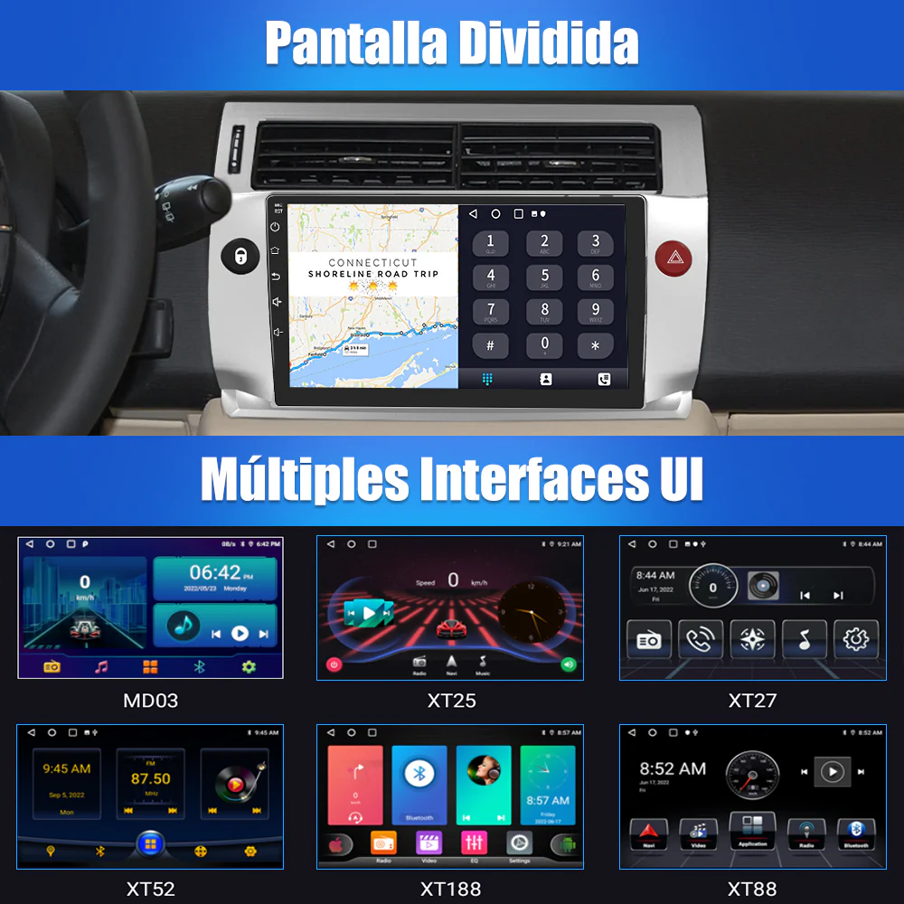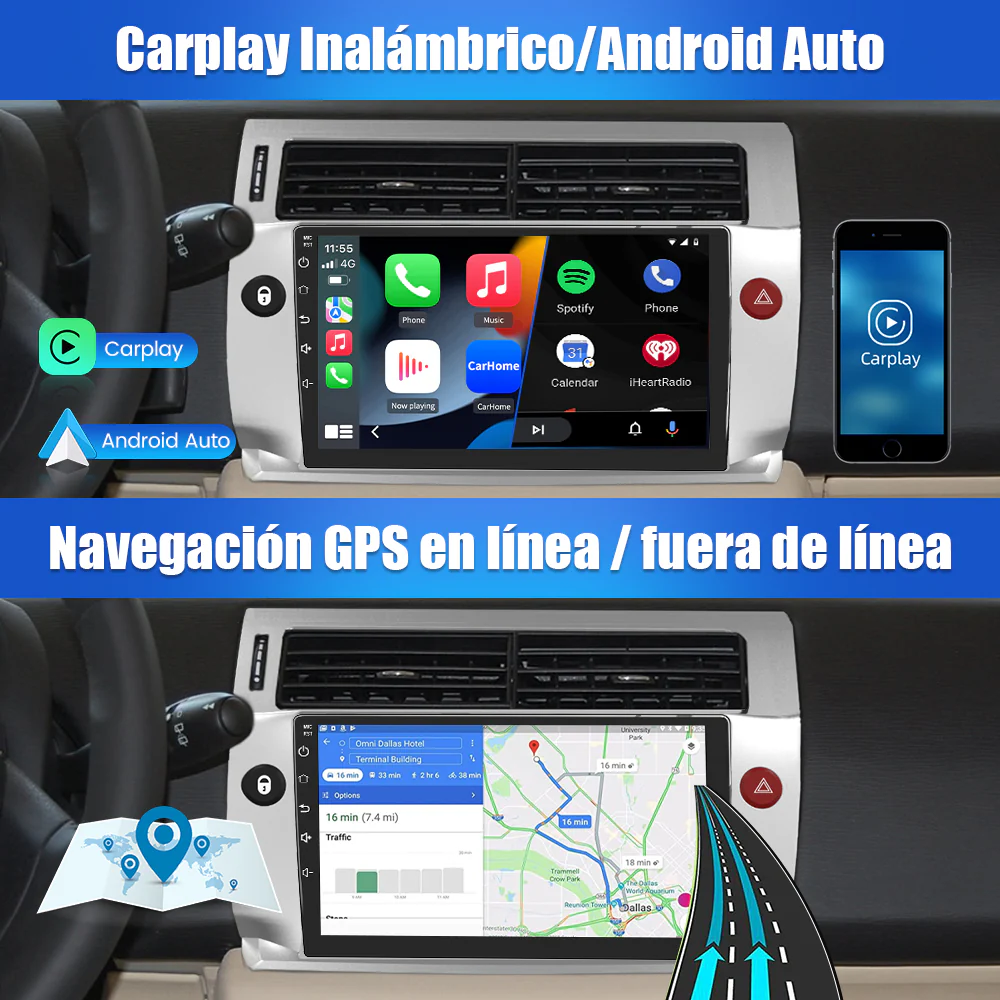 AWESAFE Radio para coche Android 13 (2 GB + 32 GB) para Citroën C4 (2004–2009) con pantalla táctil de 9 pulgadas, CarPlay, GPS, Wi-Fi, USB, Bluetooth y Android Auto.