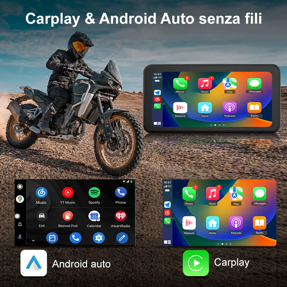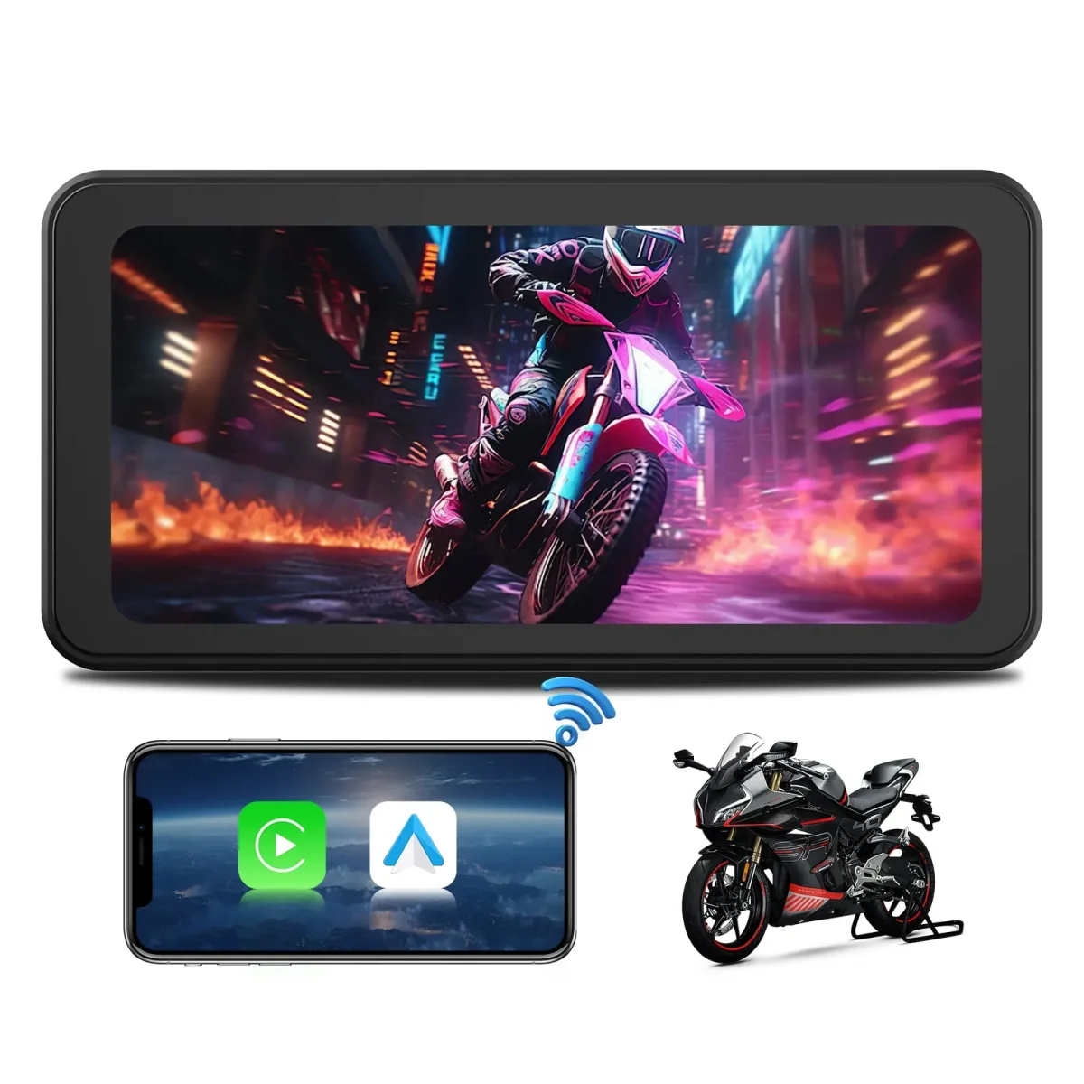 AWESAFE Schermo Carplay Per Moto Senza Fili Touchscreen Navigatore GPS da 6.25 pollici IPX8 con scheda SD Dashcam 2K Android Auto adatto a tutti i tipi di motociclette