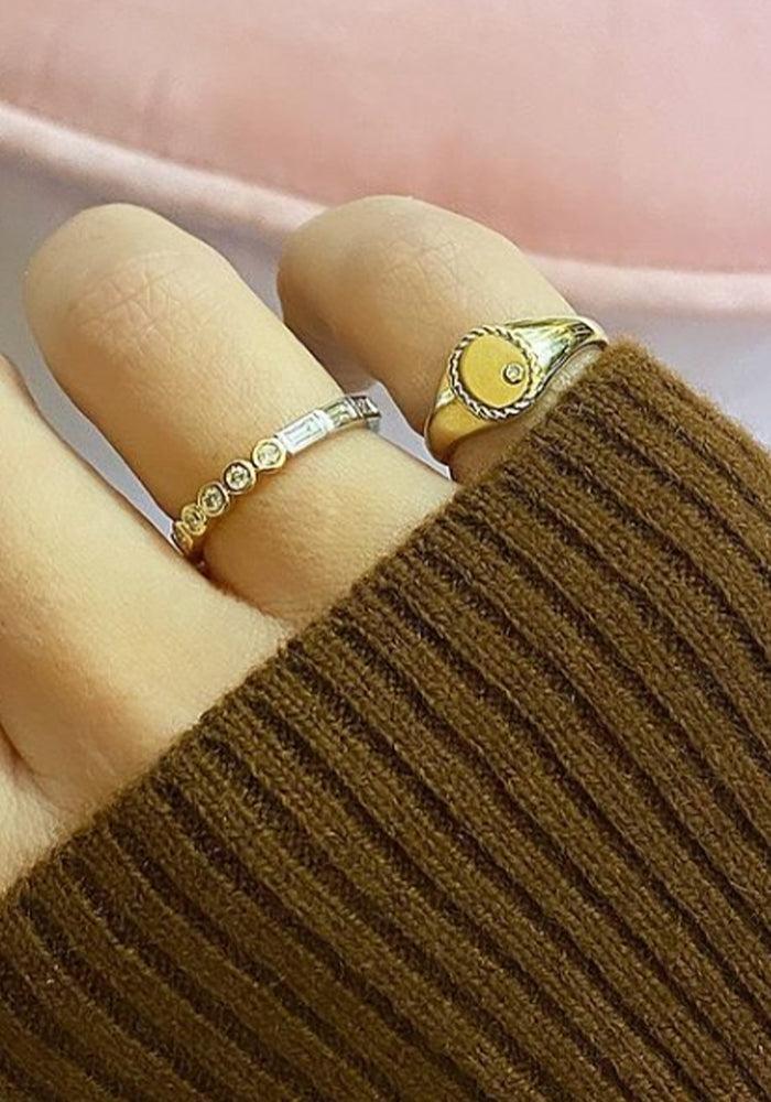 Bague mini chevalière en or jaune 9k et émail couleur jaune.