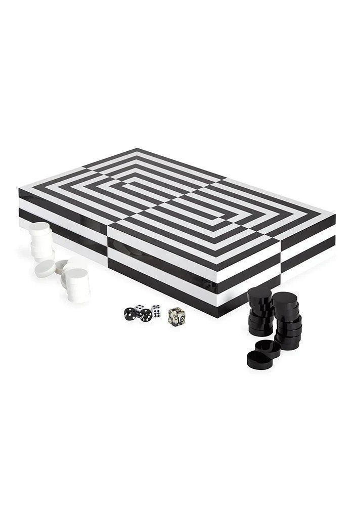 Jeu « Backgammon Op Art » Noir Et Blanc