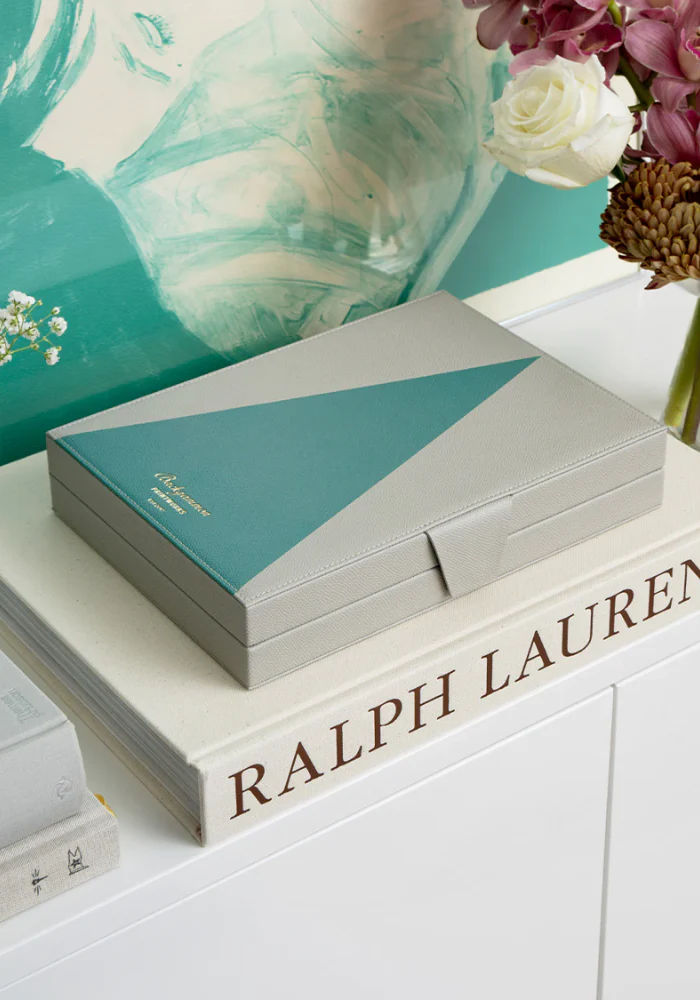 Caractéristiques : Matériaux : Boîte et plateau en bois recouverts de cuir PU avec structure en carton, pièces en acrylique Dimensions : 27,5 x 20,5 x 5 cm